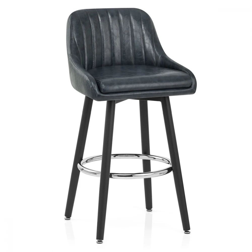 Der Retro-chic in Antik Kunstleder Barhocker bringt einen Zeitgemäβigen Blick in Ihren Innenraum. Die schlichte Sitzfläsche des Hockers kontrastiert mit der mit besticktenen vertikalen Nähte Rückenlehne. Erstellt in fester Höhe ist der Hamilton die perfekte Addierung zu Ihrer Küche. Die drehbare Sitzfläsche sorgt für einfacher Zugänglichkeit und Mehrwert. Der vier-Beine Holzgestell bekommt einen Satin-Schwarzer Finish. Um einen Unterschied subtil beizulegen sind die verfeinerte Beine mit Chrome umhüllt. Die verstellbare Füβe sind mit einen Schutzpolster vorgesehen um Ihre Böden von Kratzer zu schützen.