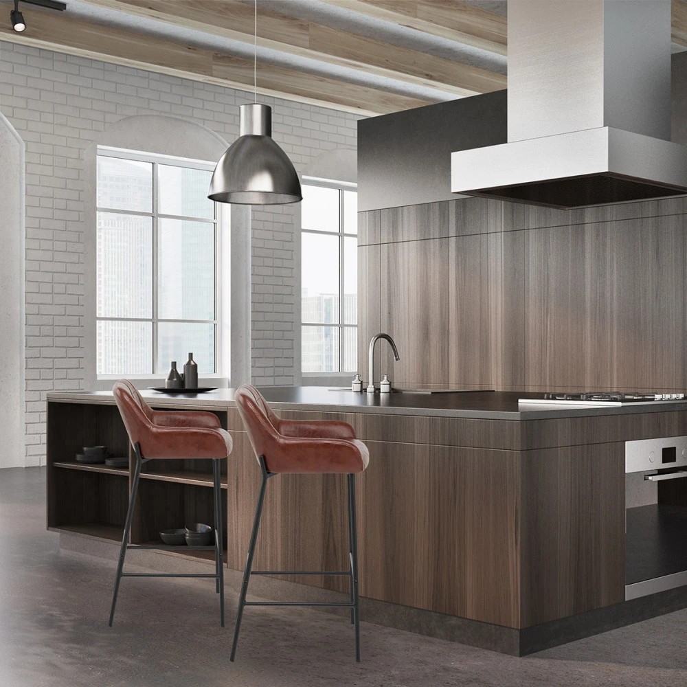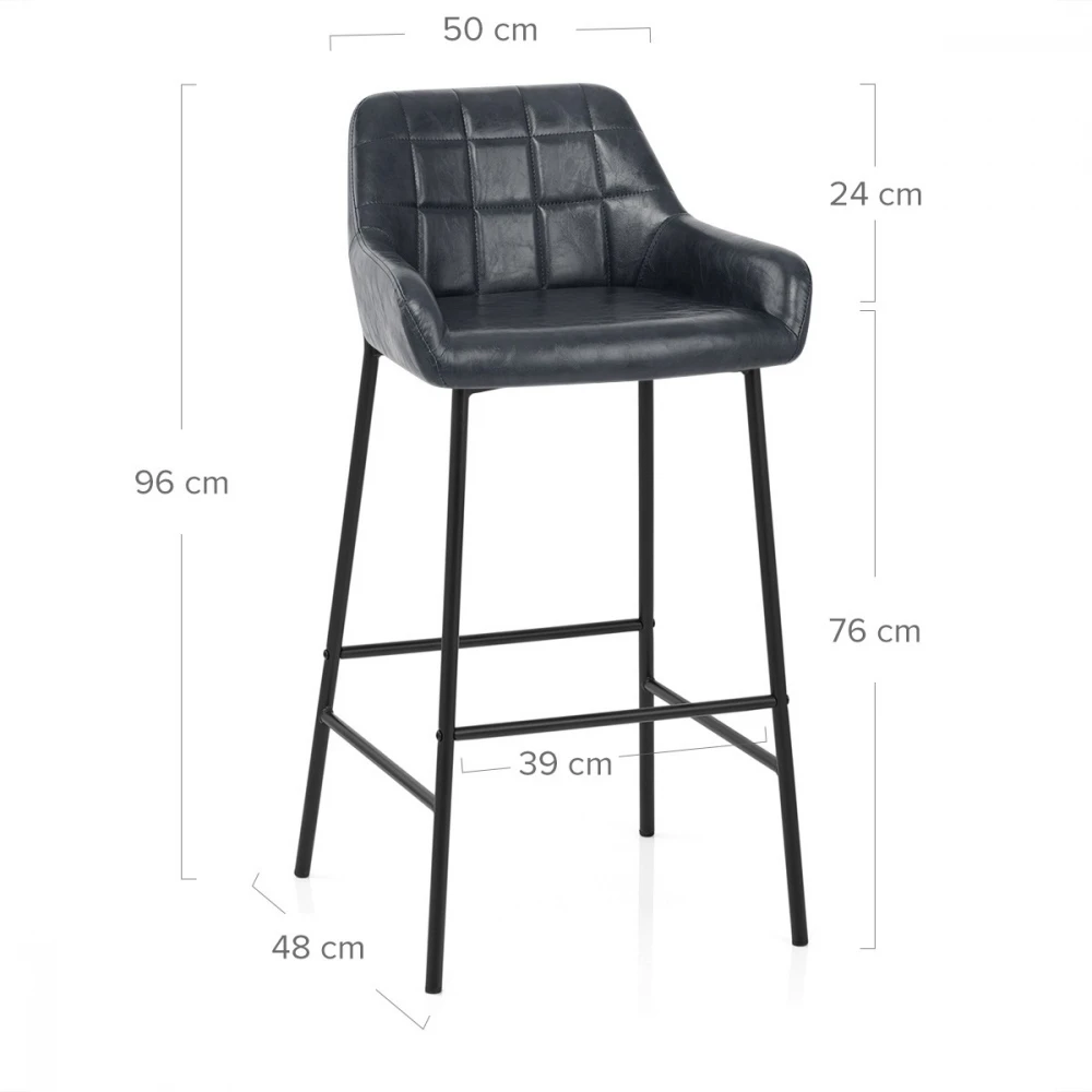Die schlanke Form und die umfassende Verarbeitung machen den Hoch Falcon Antik Kunstleder Barhocker zu einem besonders geschätzten Teil unseres Sortiments. Der Antik Kunstleder über einem Retro-Chic Sitzpolster bezogen sorgt für ein einzigartigen und stilvollen Blick. Eine schlanke, mittelhohe Rückenlehne erstreckt sich in die Rahmenseiten, sorgt für eine umfassende Form und bietet exquisiten Halt. Die Textur des Sitzes schenkt einen schönen Kontrast mit den schwarz-satinierte metal Gestell. Die vier Beine sind mit Querstreben zusammen gehalten die, vorne vom Stuhl, als Fuβstütze dienen. Der Sitz ist in feste Höhe erstellt und jeder Fuss ist mit einen Schutzpolster ausgettatet um Kratzer auf Ihre Böden zu vermeiden.