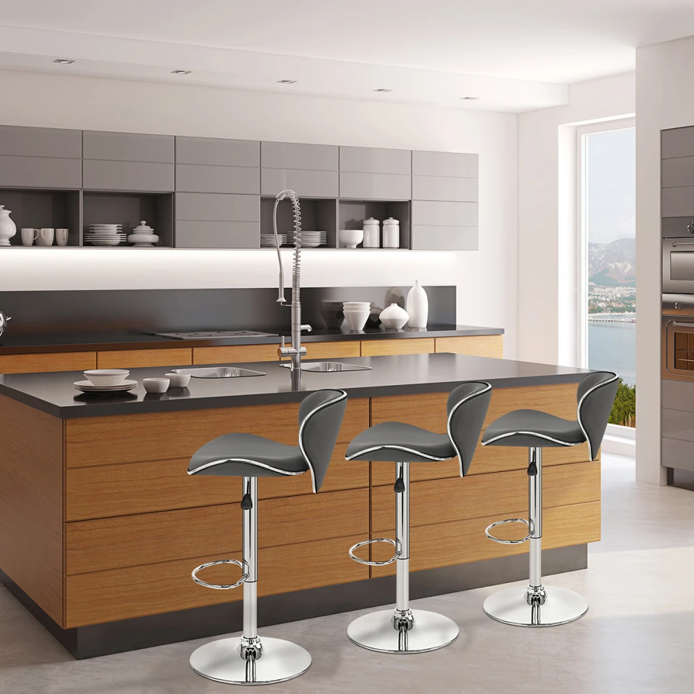 Mit seinem eleganten Design wird der Felix Chrom Barhocker Sie bestimmt verführen. Sein gut gepolsterter Sitz aus Kunstleder sorgt für hohen Komfort. Er besitzt eine Rückenlehne und eine Fußstütze. Sein Untergestell aus poliertem Chrom wird Ihre Innenräume zum Glänzen bringen. Dieser Barhocker ist höhenverstellbar und um 360° drehbar. Plastikschützer unter dem Sockel sorgen dafür, dass Ihr Boden nicht beschädigt wird.