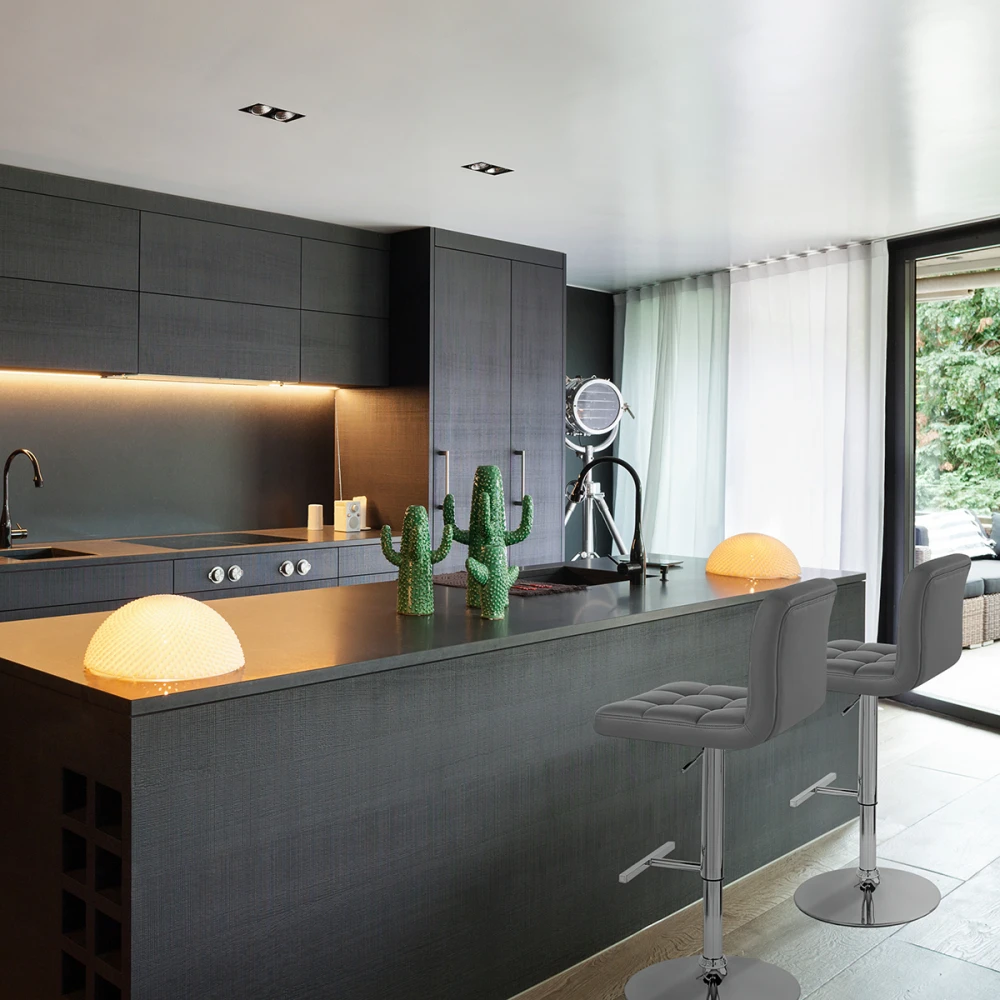 Der Grid, mit seinem Retro-Look, bietet Ihnen einen Sitz aus Kunstleder. Eingenähte horizontale und vertikale Linien geben diesem Barhocker einen eigenen Stempel. Die Höhe des Grid ist einstellbar und er kann um 360° drehen. Der Sockel aus Chrom ist mit einer Fußstütze versehen. Ihr Boden wird durch Gummileisten geschützt.