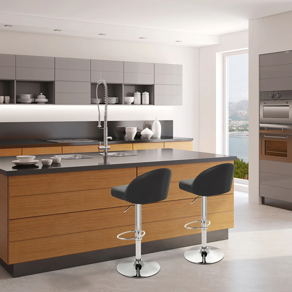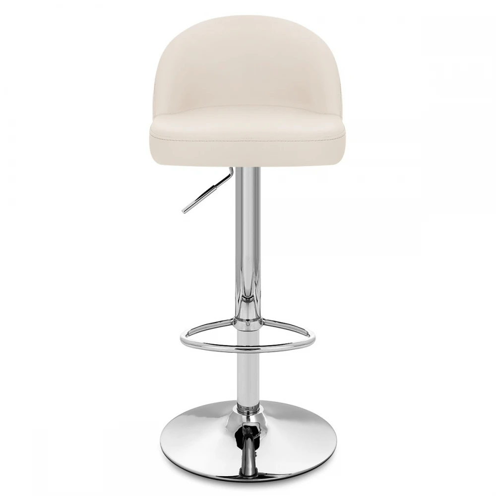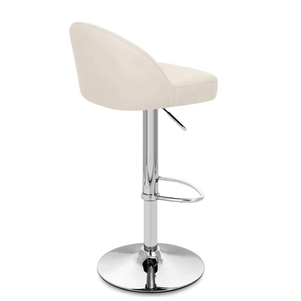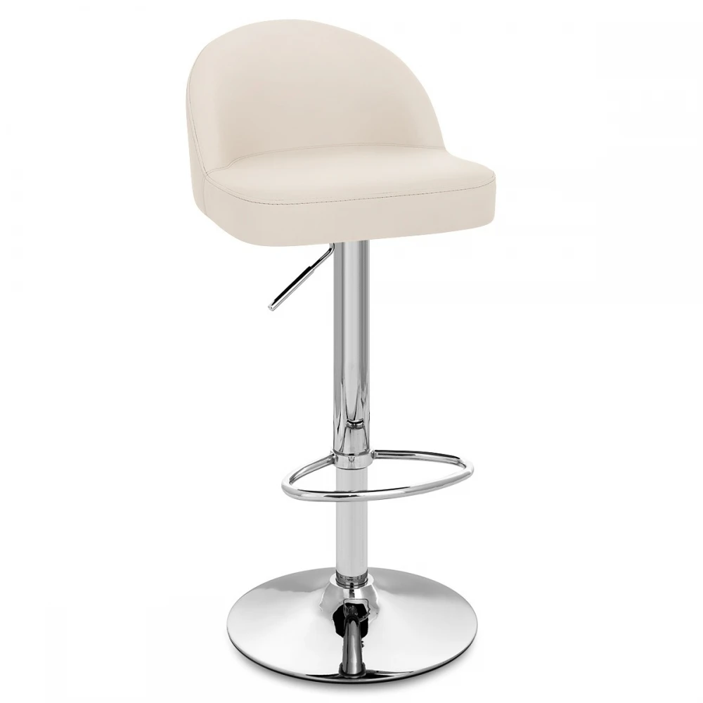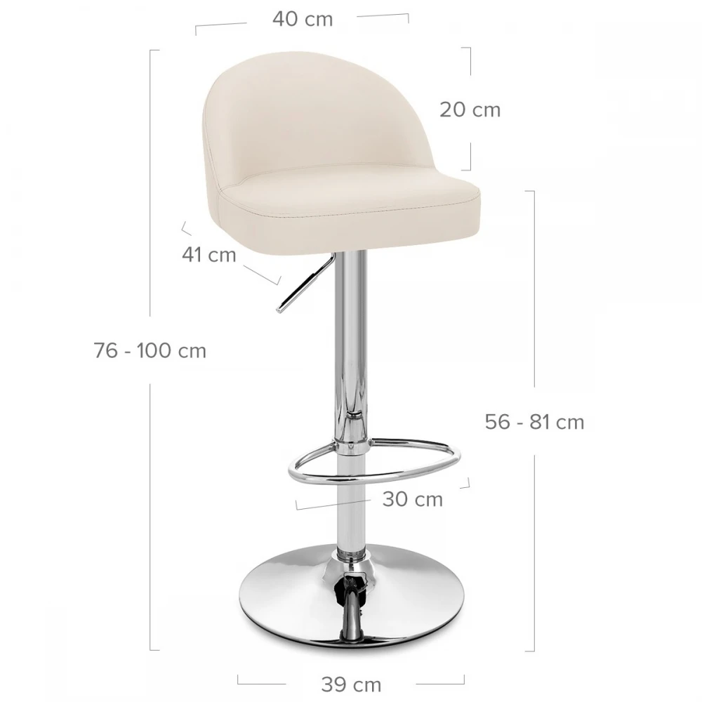 Charmant und schlicht wird der Barhocker Mimi Sie bestimmt verführen. Sein Sitz aus mit unserem dichten Schaumstoff gepolsterten Kunstleder ist sehr komfortabel. Sein Untergestell mit Zylinder ist aus poliertem Chrom, was einen schicken Hochglanz-Effekt bewirkt. Er ist höhenverstellbar und kann um 360° gedreht werden. Schließlich besitzt er auch eine halbmondförmige Fußstütze und Bodenschützer unter seiner runden Basis. Er ist auch in gebürstetem Finish erhältlich.
