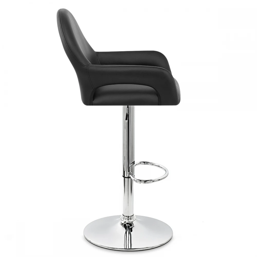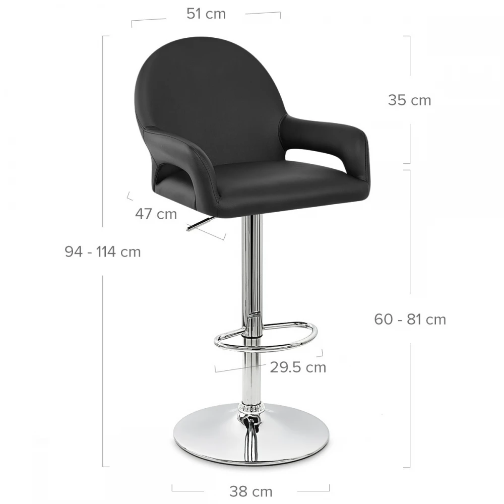 Der Barhocker Munich mit seinem klassischen Design hat einen komfortablen mit dichtem Schaumstoff gepolsterten Kunstledersitz. Ausgestattet mit Arm- und Rückenlehne bietet der Munich einen sehr hohen Komfort. Das glänzende Untergestell aus poliertem Chrom ist, dank eines Zylinders, in der Höhe stufenlos einstellbar. Desweiteren ist er um 360° drehbar und verfügt über eine Fußstütze. Dieser Barhocker besitzt, wie alle unsere Produkte, Gummischützer für Ihren Fußboden.