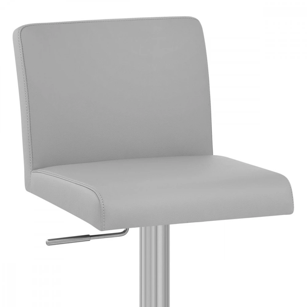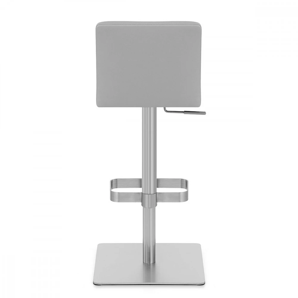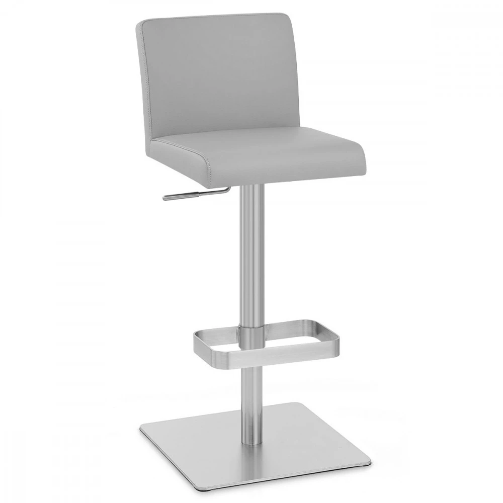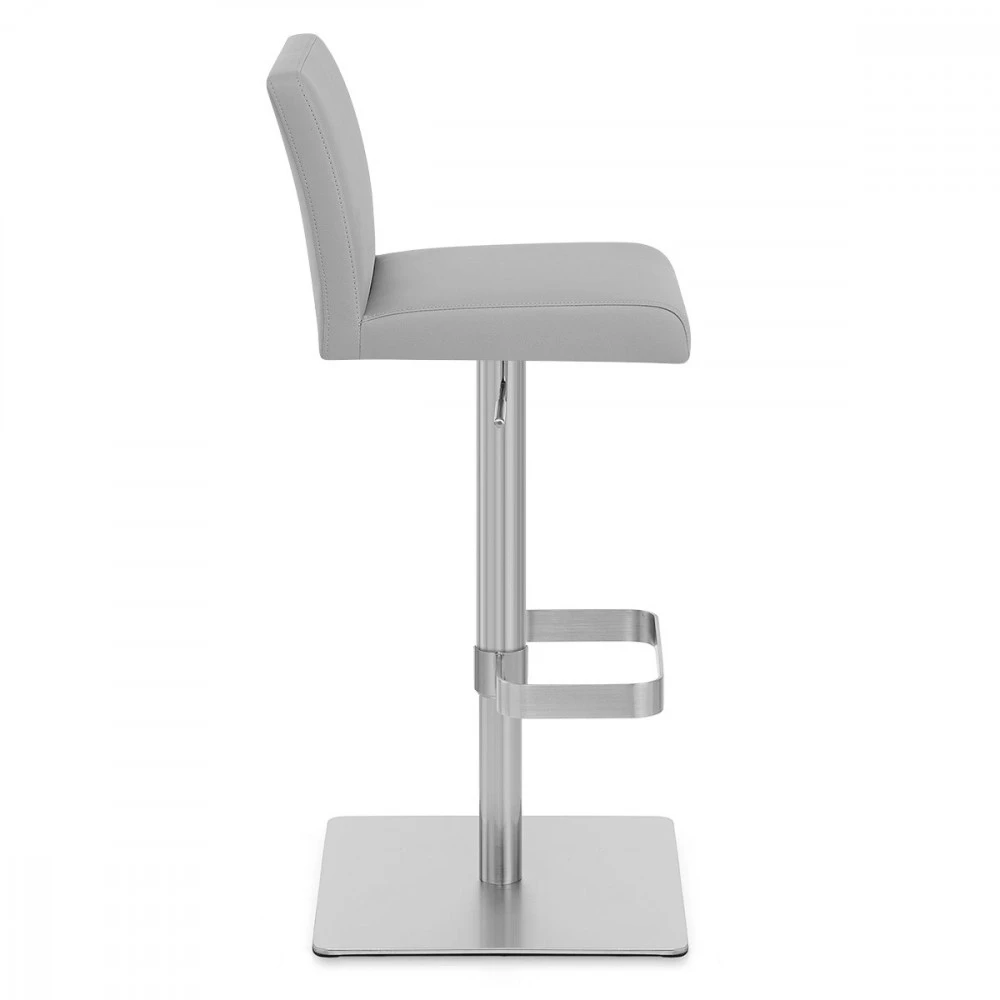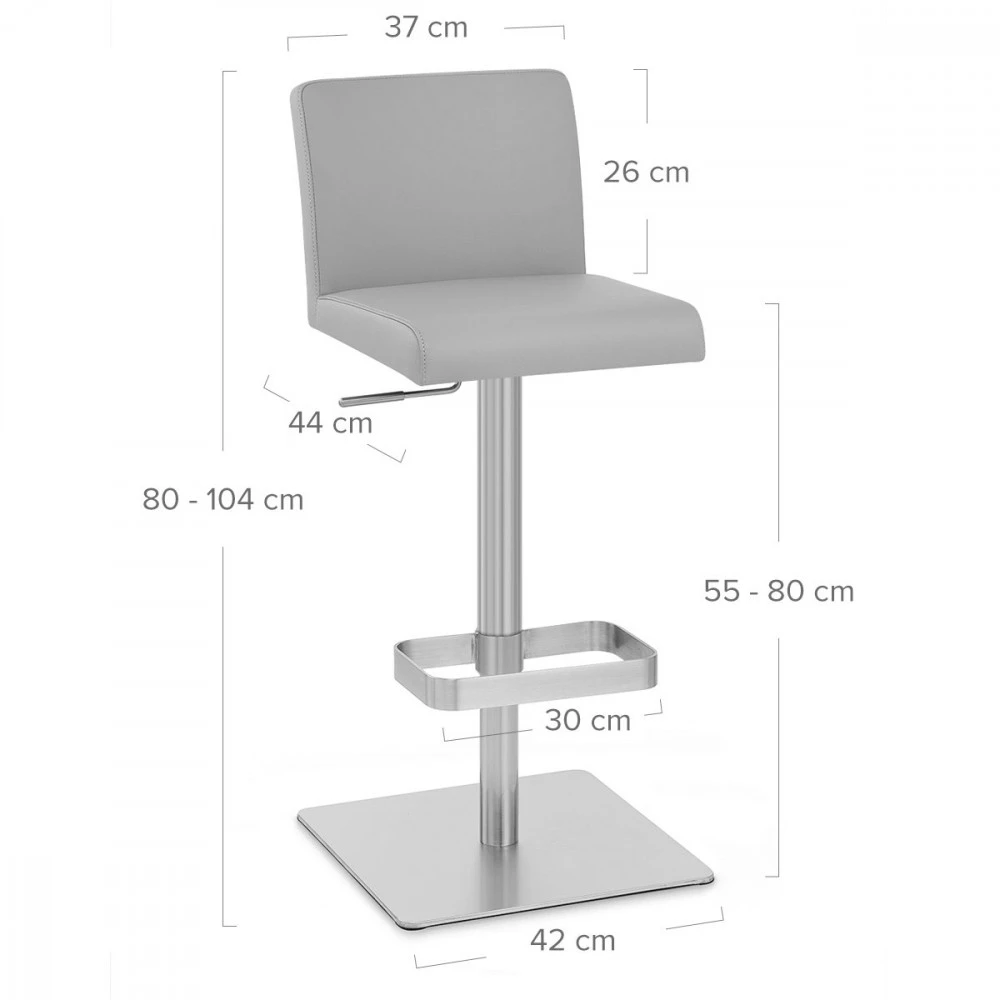 Die Regelmäßigkeit der Linien des Barhockers Newark macht aus ihm einen wertvollen Begleiter in luxuriösen Esszimmern. Geometrische Linien aus gebürstetem Chrom sorgen dafür das aus ihm ein elegantes und gleichzeitig schlichtes Modell wird. Eine Gasdruckfeder gewährleistet, dass Sie die Höhe stufenlos Ihrem Bar-Tisch oder Ihrer Arbeitsfläche anpassen können, so dass jedes Familienmitglied oder jeder Gast seinen Platz findet. Gummibänder unter dem Sockel des Newark-Modells sorgen dafür, dass Ihr Fußboden nicht verkratzt wird.