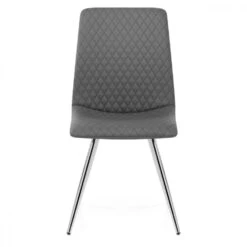 Der Stuhl Dawn ist sehr schick. Sein mit Kunstleder überzogener Sitz verfügt über eine große Rückenlehne und ein Muster mit großen Quadraten. Diese wiederrum machen den Dawn sehr elegant und schick. Seine Füße sind aus poliertem Chrom und sind mit rutschfesten Gummikappen ausgestattet, damit Ihr Fußboden keinen Schaden nimmt.