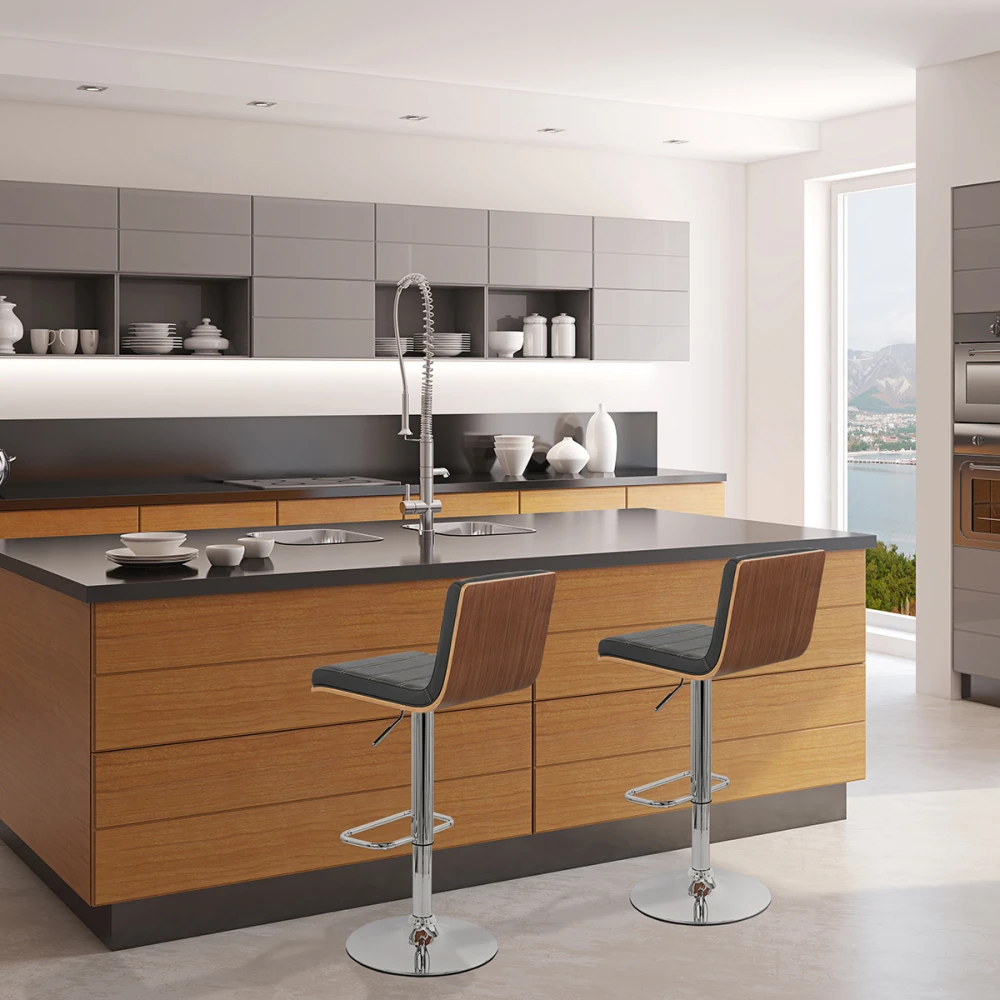 Das Mindeste, was man über den Barhocker Riviera sagen kann, er besitzt Stil. Mit einem Mix aus modern und zeitgenössisch werden Sie den Riviera kennen und lieben lernen. Die gut gepolsterte Sitzfläche wird von einer Schale aus hochwertigem Walnuss exzellent in Szene gesetzt. Hier zeigt sich auch die Qualität des sorgfältig genähten Kunstleders, das einzigartigen Komfort liefert. Da er höhenverstellbar und um 360° drehbar ist, haben Sie ebenfalls eine große Bewegungsfreiheit und können Ihre Füße auf der extra dafür vorgesehenen Fußstütze ablegen. Angebracht ist diese an dem in Chrom gehaltenen Gestell, welches in einem stabilen Sockel verläuft.