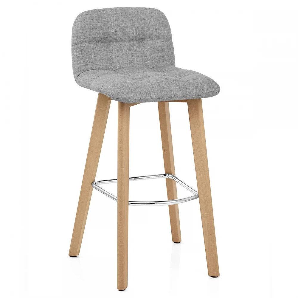 Hex, mit diesem Barhocker kann man nicht falsch liegen. Sein modischer und doch klassischer Sitz ist mit Stoff bezogen und Nähten im Raster Muster verarbeitet. Seine Stabilität wird durch sein Gestell aus Holz gewährleistet und hat ebenfalls eine eckige Fußstütze aus Chrom. Um Schaden vorzubeugen befinden sich Bodenschutzkappen an seinen Füßen.