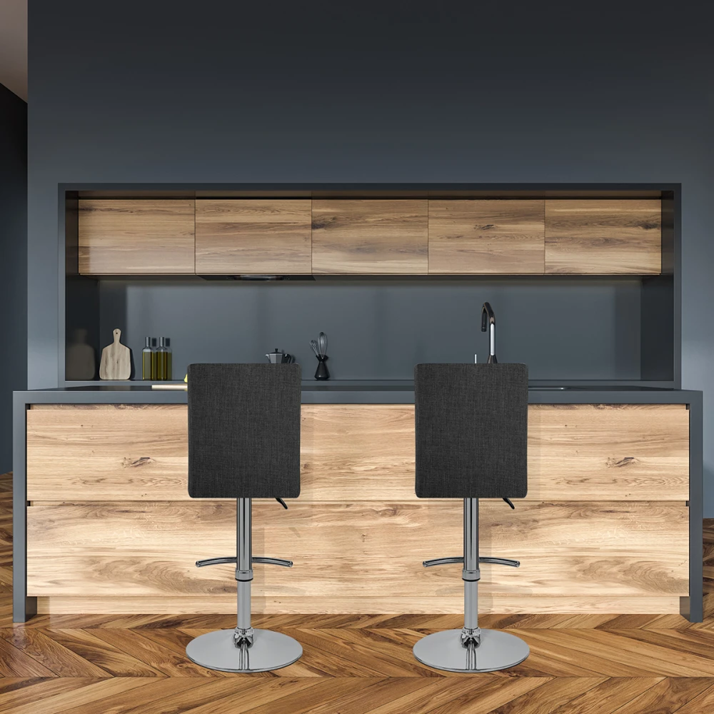 Sie werden sich nicht satt sehen können an dem modernen Deluxe High Back Stoffbarhocker. Die Gasdruckfeder und der Fuß des Barhockers bestehen aus poliertem Chrom und der gepolsterte Sitz bietet Ihnen perfekten Komfort. Sie können den Barhocker um 360 Grad drehen und Ihre Füße bequem auf der t-förmigen Fußauflage ausruhen. Die Funktionalität wird durch einen Gummischutzring an der Unterseite des Barhockers abgerundet, der Ihren Boden schützt.