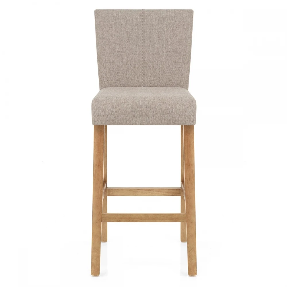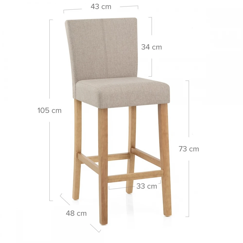 Der Stoffbarhocker Eiche Cornell wird Sie nicht enttäuschen. Er ist ein echtes Meisterstück, das Tradition und Moderne miteinander verschmelzen lässt. Der zeitlose Sitz ist bequem gepolstert und ein absoluter Hingucker durch die vertikalen Ziernähte und die sanft geschwungene Vorderkante. Die großzügig bemessene Rückenlehne wird Ihren Rücken mit vielen entspannten Stunden verwöhnen. Der außergewöhnliche Sitz ruht auf einem stabilen Holzrahmen, der in vier solide Stuhlbeinen mit exquisiter Eichenlackierung übergeht. Die Stuhlbeine sind durch vier Holzstäbe miteinander verbunden, die als bequeme Fußablage dienen. Natürlich verfügt der Barhocker Cornell auch über vier Schutzkappen, die Ihren Boden schützen werden.
