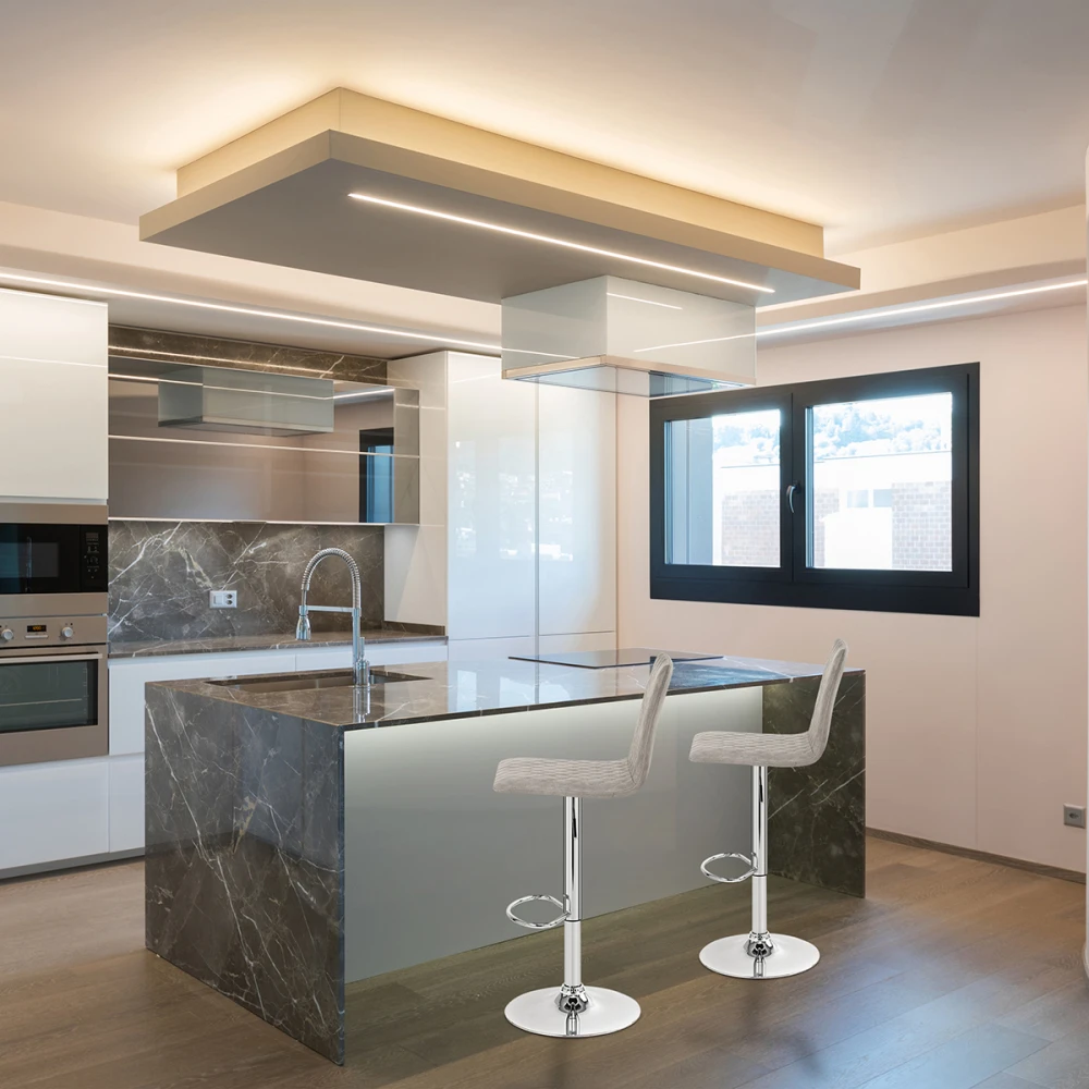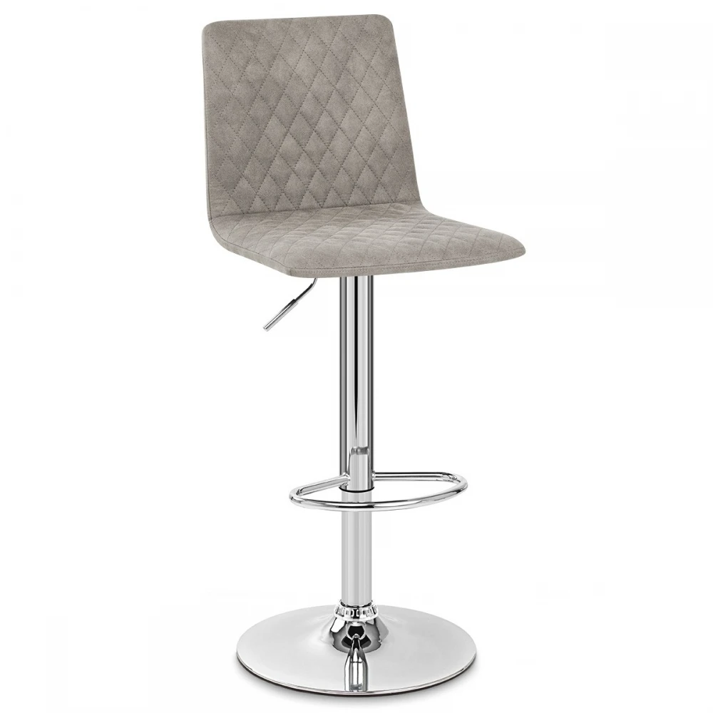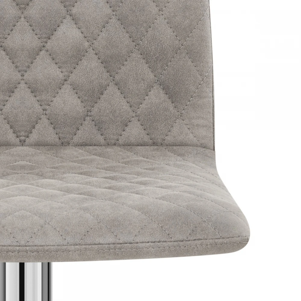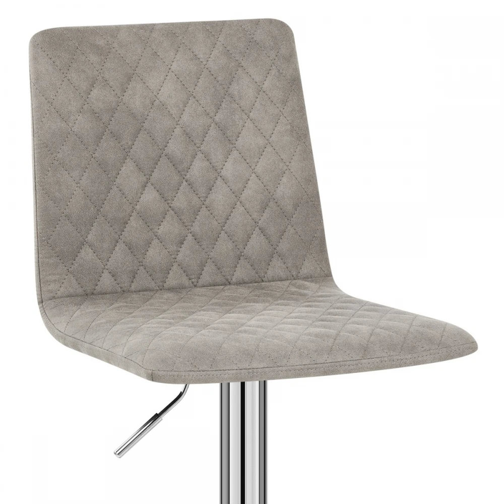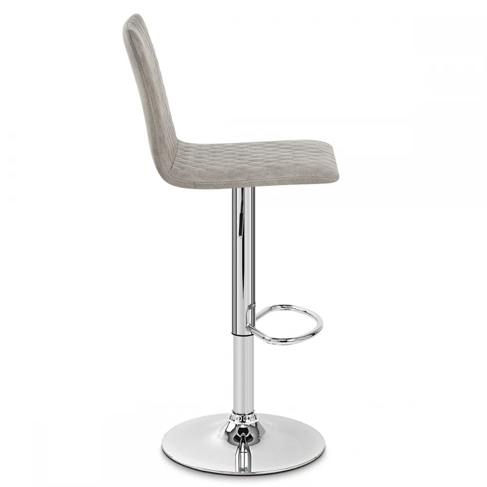 Ein neues, noch nie da gewesenes Modell, das Atlanta Hocker ist eine hervorragende Wahl für moderne Einrichtungen. Die gestickten Diamantenformen auf dem gepolstertem Wildledersitz bringen eine moderne Perönlichkeit und Charme zum austrahlen. Die hohe Rückenlehne erhöht die Bequemlichkeit beim sitzen. Eine Gaslift-Säule bietet eine leicht verstellbare Höhe und einen 360 Grad Drehmechanismus, während eine geschwungene Fußstütze stilvoll und unterstützend ist. Das Gestell des Barhockers hat einen Chrome Finish, welcher einen zeitgenössischen Eindruck erweckt. Ein Bodenschutz ist am Tellerfuß angebracht.