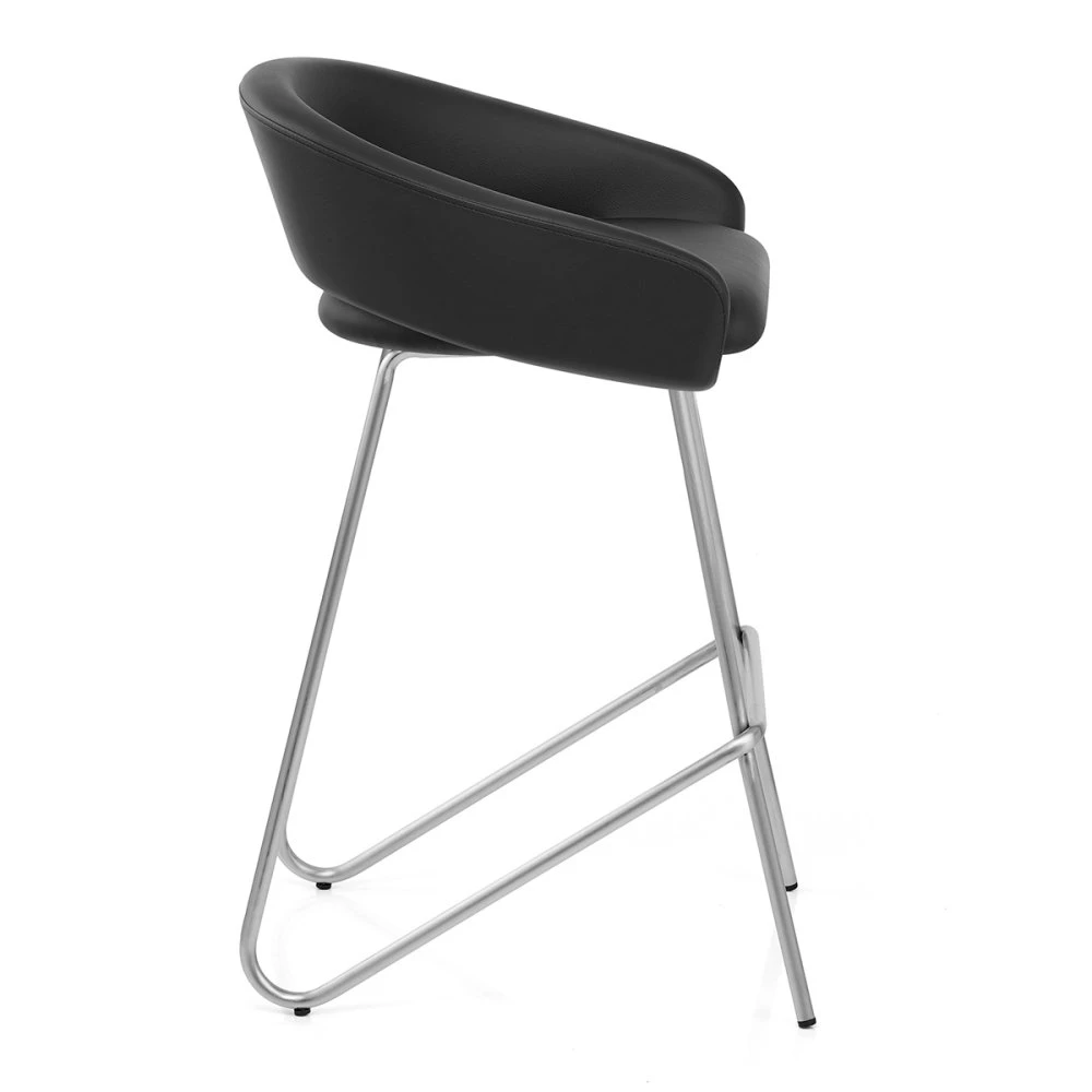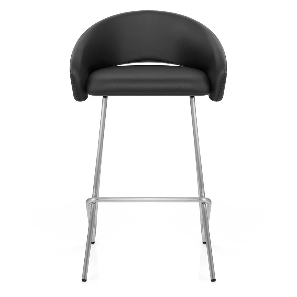 Entdecken Sie den Bay Barhocker – ein wahrhaft innovatives Möbelstück, das Formen und Raum auf fantasievolle Weise nutzt, um die Atmosphäre Ihres modernen Interieurs zu bereichern. Dieser Hocker besticht nicht nur durch sein ansprechendes Äußeres, sondern auch durch seine bemerkenswerte Vielseitigkeit, die ihn perfekt für eine Vielzahl zeitgenössischer Einrichtungsstile, von modern bis hin zu City-Loft, macht. Der Sitz des Barhockers ist mit wunderschönem Kunstleder bezogen und besteht aus zwei Hauptkomponenten: einem gepolsterten Sitzkissen und einer mittelhohen Rückenlehne. Die Rückenlehne erstreckt sich nach außen, um das Sitzkissen zu stützen und zusätzlichen Komfort zu bieten. Die ergonomische Rückenlehne verfügt über eine elegante Lücke, die das Manövrieren des Stuhls erleichtert und einen modernen Akzent setzt. Die Stabilität des Hockers wird durch die Beine gewährleistet, die an der Vorderseite in einem dezenten Winkel geneigt sind, während die sich die Hinterbeine nach vorne beugen und eine einzigartige Fußstütze bilden. Diese Metallbeine sind in einem atemberaubenden gebürsteten Goldfinish gehalten und mit Bodenschutzdübeln ausgestattet, um Kratzern vorzubeugen.