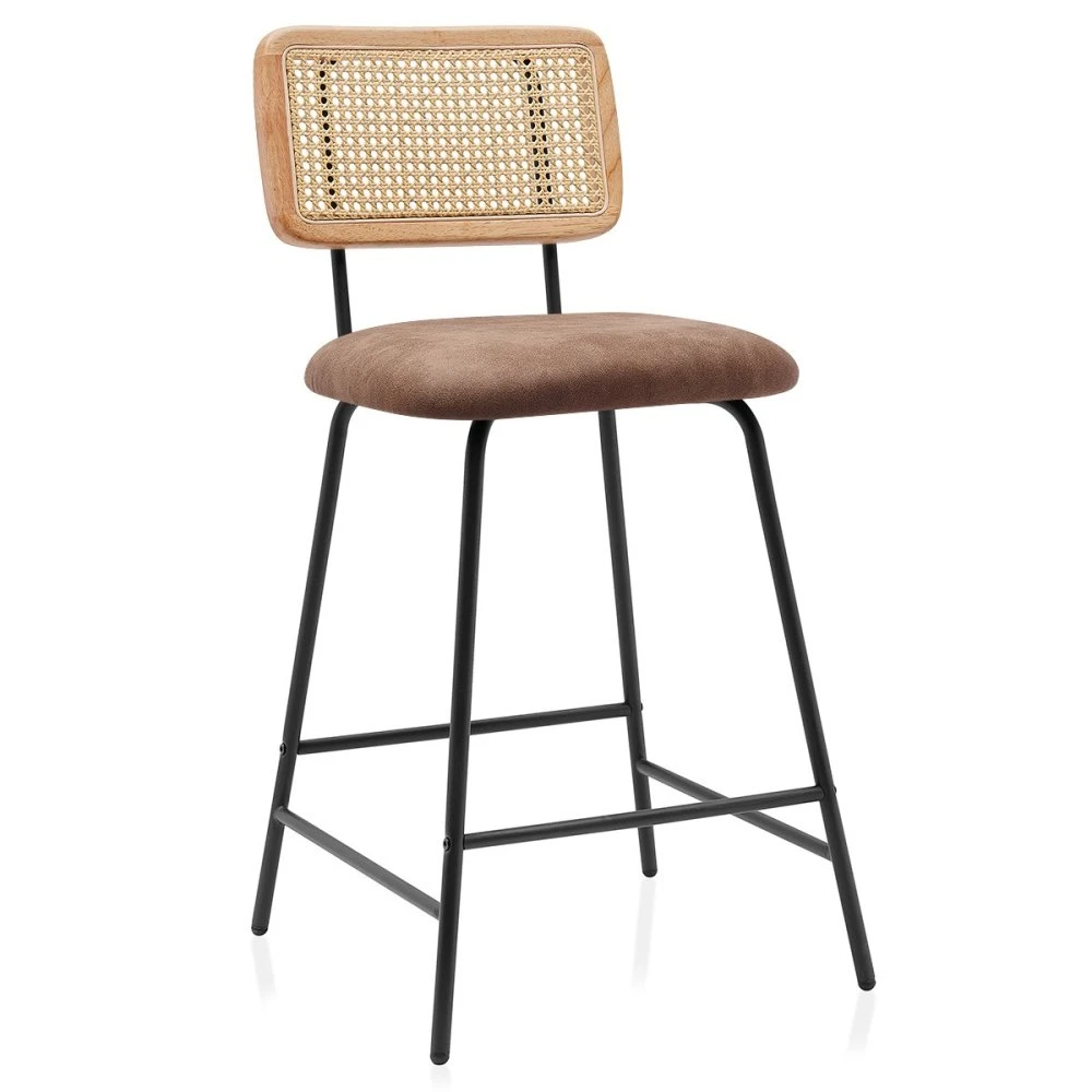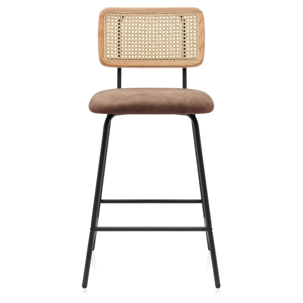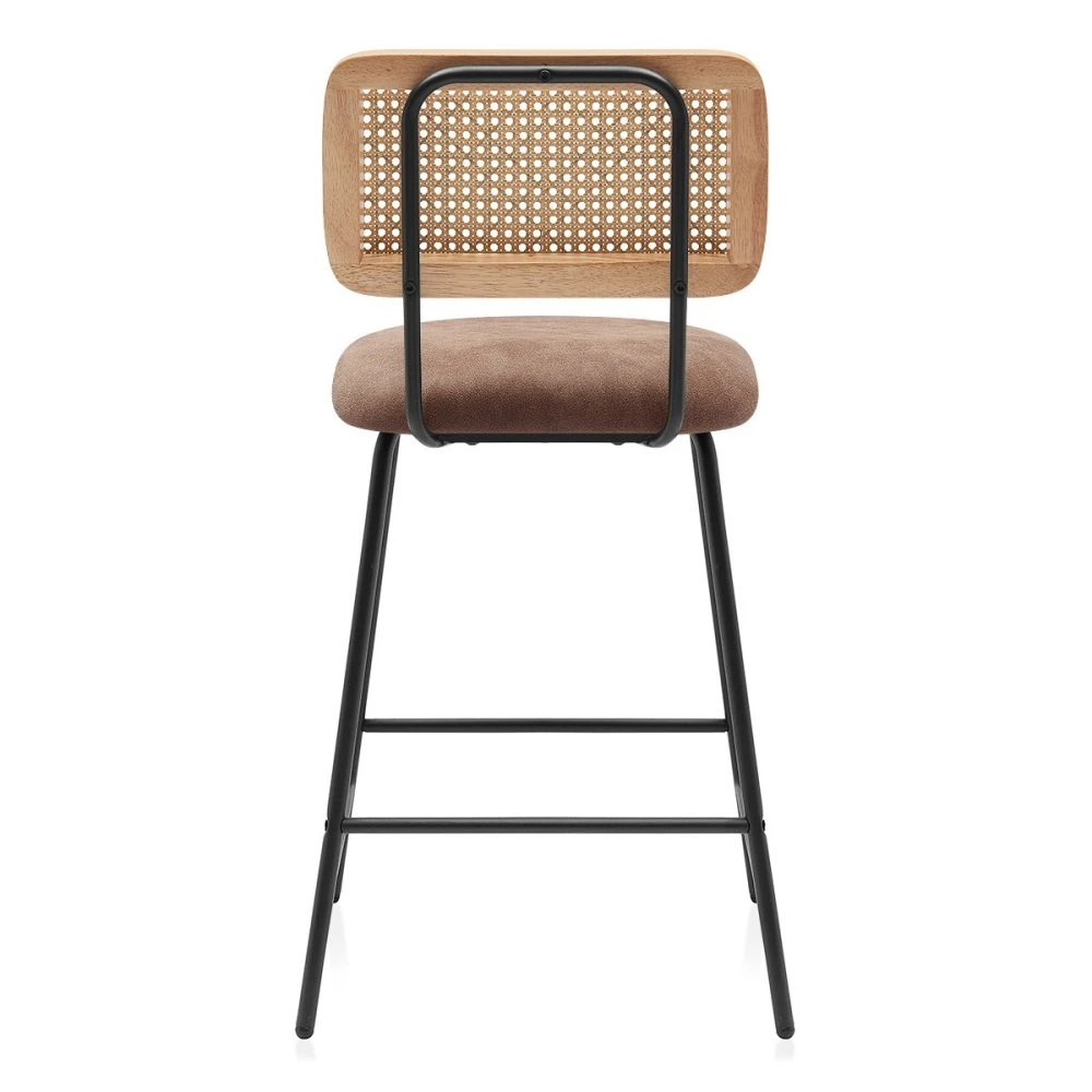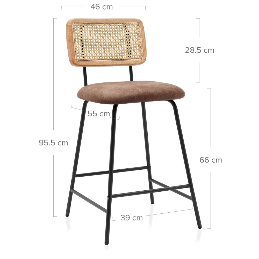 Bringen Sie mit dem Cassis Barhocker einen Hauch von 70er Jahre in Ihr Zuhause. Dieses hochinnovative Möbelstück besticht durch ein radikales Design, das Inspirationen aus den letzten Jahrzehnten aufgreift und sie in ein unverzichtbares Element für Ihre Kücheninsel verwandelt. Die Sitzfläche besteht aus einer Kombination verschiedener Materialien. Das gepolsterte Sitzkissen ist mit Kunstleder ummantelt, während die erhöhte Rückenlehne aus Holzrohren besteht, die von einer massiven Holzleiste umrahmt werden. Um ein optisch platzsparendes und leicht manövrierbares Design zu schaffen, sind die beiden Sitzteile über zwei Metallstreben verbunden. Das vierbeinige Gestell besteht aus Metallrohren und einer Fußstütze, die mit einer schwarzen Pulverbeschichtung versehen sind. Der Hocker ist nicht höhenverstellbar und somit nur für Standard-Küchentheken oder Bars geeignet. Die Unterseite jedes Beins ist mit einem Schutzdübel versehen, um eventuelle Schäden am Boden zu verhindern.
