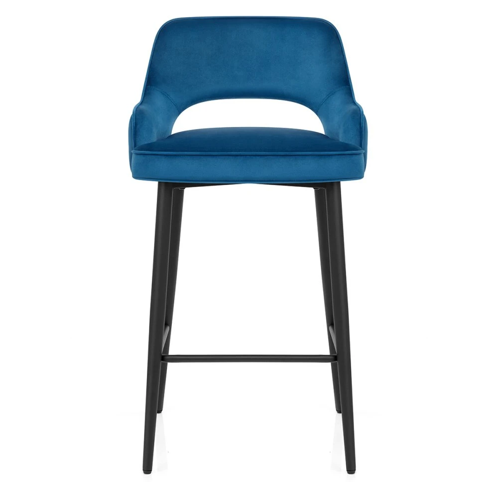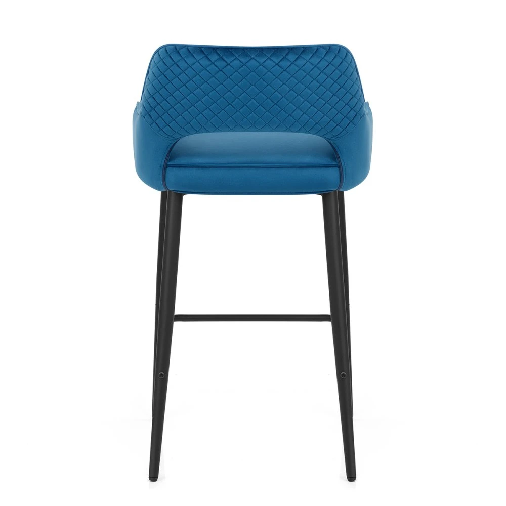 Dieser Barhocker setzt in jedem Zuhause ein zeitgemäßes Statement und bietet gleichzeitig eine praktische und bequeme Sitzgelegenheit. Ein dynamisches und wandelbares Designerstück, das sich perfekt in Ihre Küche einfügt. Der Sitz ist mit glamourösem Samt überzogen und verfügt über eine hohe, sesselartige Rückenlehne, die außen mit einem Rautenmuster und einer Paspelnaht versehen ist. Eine raffiniere Wölbung am unteren Ende der Rückenlehne verstärkt den modischen Look. Der platzsparende Barhocker verfügt über ein robustes Metallgestell mit schwarz satinierter Pulverbeschichtung und vier Rohrbeine, die sich zum Boden hin verjüngen und so für die nötige Stabilität sorgen. Die Fußstreben schlagen zwei Fliegen mit einer Klappe und eignen sich perfekt zum Abstellen Ihrer Füße. Zum Schutz Ihrer Böden sind die Unterseiten der vier Füße mit Schutzstopfen versehen.
