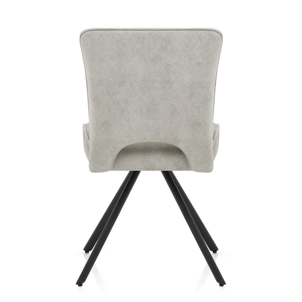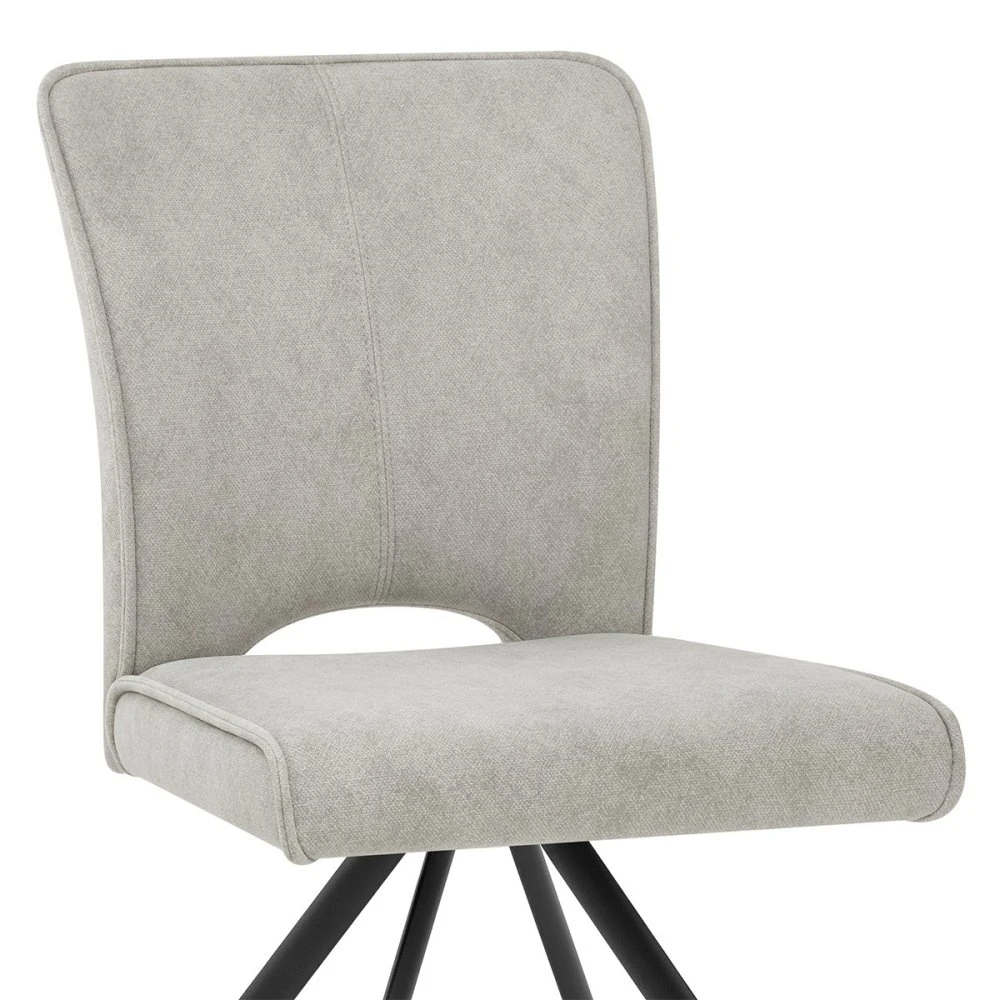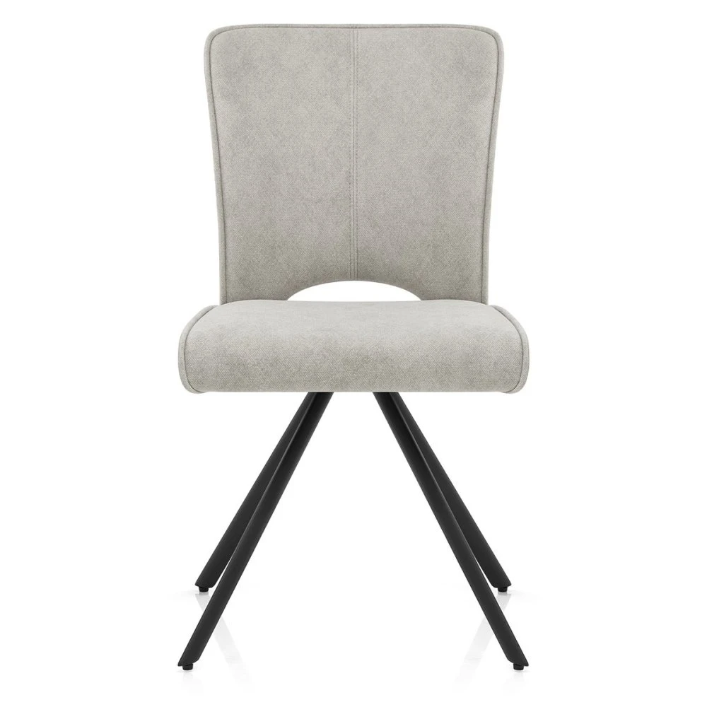 Der zeitgemäße Dexter Esszimmerstuhl mit Stoffbezug bietet einen entspannten und trendigen Look für jeden Essbereich. Kurz: Ein echter Blickfang, der jedem Esszimmer den letzten Schliff verleiht. Die hohe Rückenlehne ist nach oben hin breiter und hat einen auffälligen, bogenförmigen Ausschnitt, der mit dem gut gepolsterten Sitzkissen verbunden ist. Die Rückenlehne ist mit einem weichen, strukturierten Stoff mit vertikaler Ziernaht bezogen. Der gesamte Sitz ist ergonomisch geformt und mit einer Lendenwirbelstütze versehen, die von einer Paspelierung umgeben ist. Das robuste Metallgestell mit mattschwarzer Lackierung wird von vier rechteckigen Beinen getragen, die für einen klaren und ansprechenden Look sorgen. Der Metallrahmen hat die optimale Sitzhöhe für Standardtische und überzeugt durch eine robuste Konstruktion und einen modernen Stil. Integrierte Schutzstopfen schützen Ihren Boden vor Kratzern.