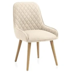 Der Azure Esszimmerstuhl mit Kunstleder-Lehne hat ein eher traditionelles Design mit leichtem Retro-Touch. Ein wunderbarer Polsterstuhl, der sich für eine Vielzahl von Inneneinrichtungen eignet und Ihre Gäste zum Staunen bringen wird. Die geschwungenen Seiten sind wie ein Sessel geformt und sorgen so für ein entspanntes Sitzerlebnis. Die paspelierte hohe Rückenlehne, die Armlehnen und die Vorderseite des Sitzpolsters sind mit einem neutralen, aber charmanten Kunstleder bezogen. Die Innenseite der Rückenlehne und Armlehnen ist mit einem Rautendetail versehen, das dem Stuhl den letzten Schliff verleiht. Gestützt wird der Sitz von hübschen Massivholzbeinen, die in Eiche lackiert sind und perfekt zu den neutralen Tönen der Sitzfläche passen. Der Stuhl hat die perfekte Höhe für Ihren Ess- oder Küchentisch. Mitgelieferte Bodenstopfen schützen Ihren Fußboden vor Kratzern.