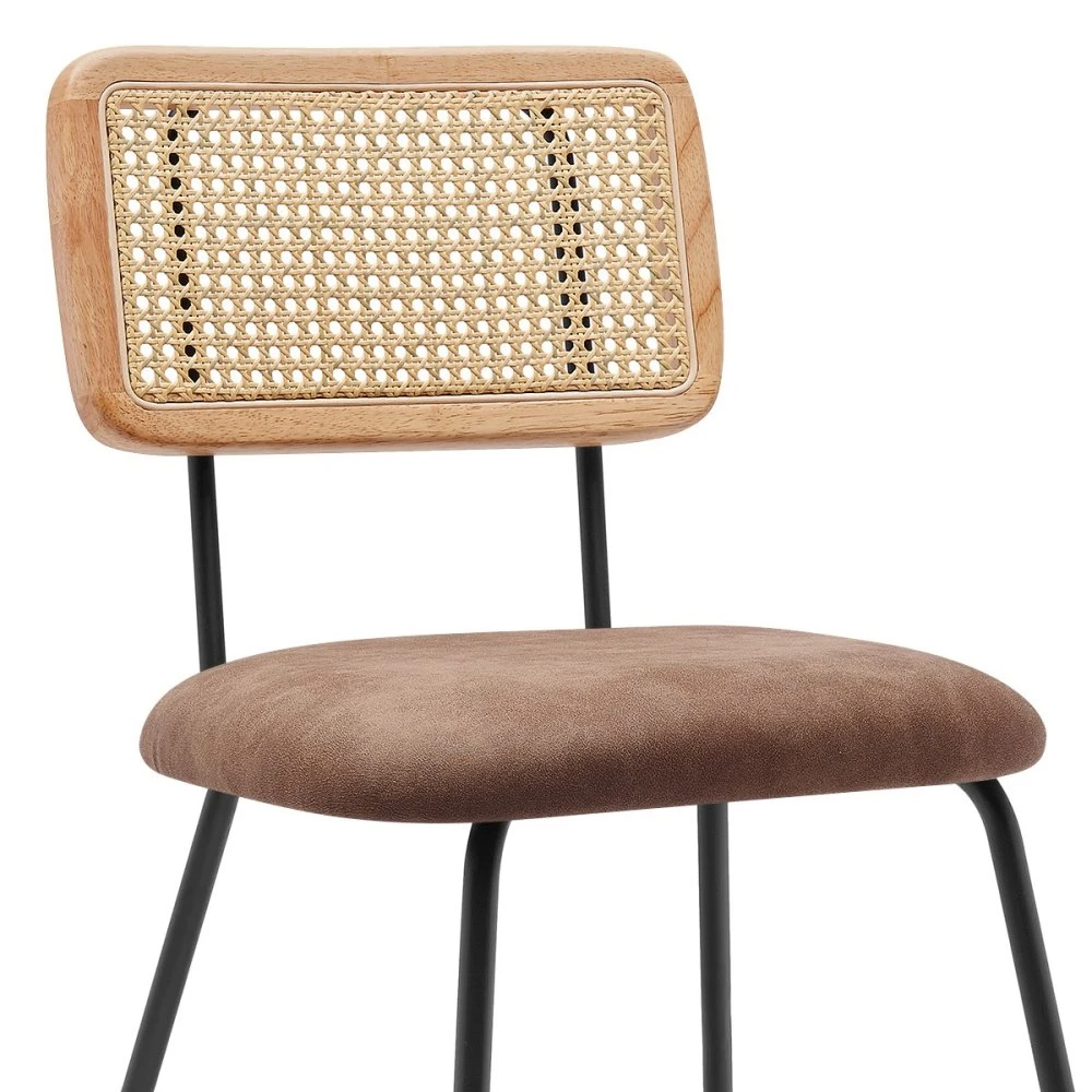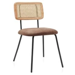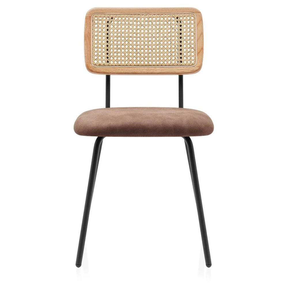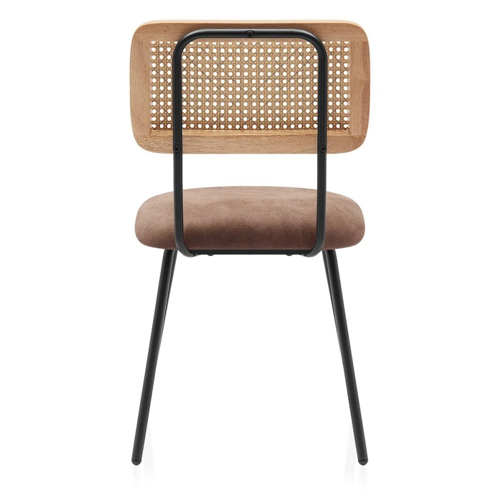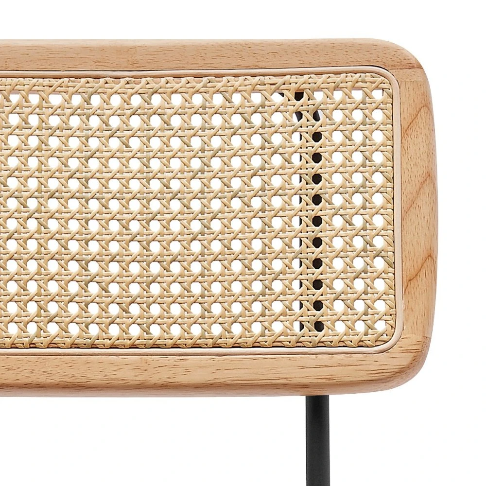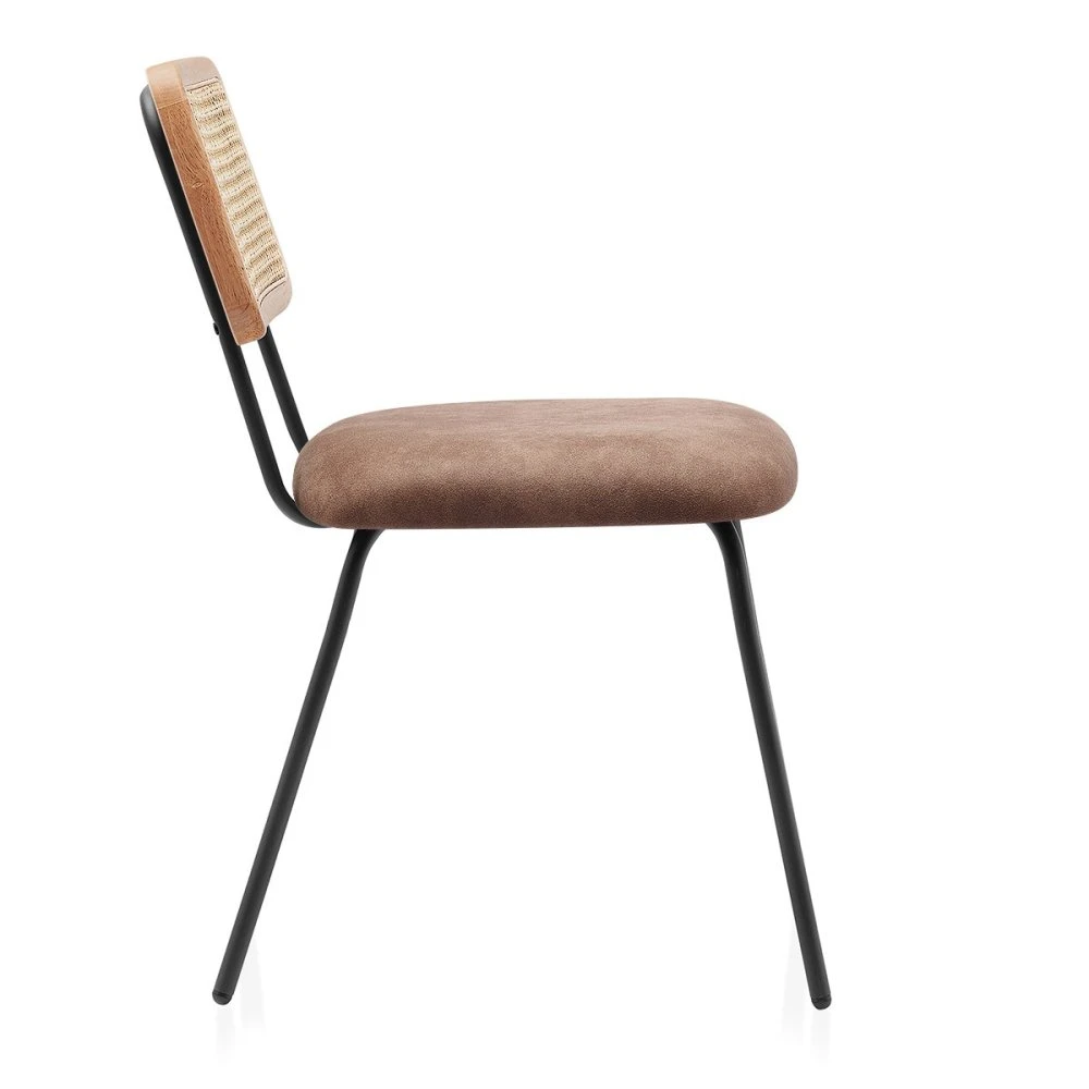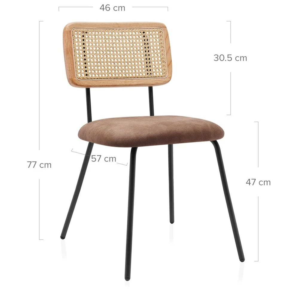 Der innovative Cassis Esszimmerstuhl ist das beste Beispiel für Retro-Innovation auf höchstem Niveau. Der von den 1970er Jahren inspirierte Stuhl ist ein skulpturales Stück, das eine Vielzahl von kontrastierenden Texturen kombiniert und einen Hauch von künstlerischem Stil in Ihren Essbereich bringt. Das facettenreiche Design arbeitet mit verschiedenen Materialien. Von einer gepolsterten Sitzfläche mit Kunstlederbezug bis hin zu einer erhöhten, mittelhohen Rückenlehne aus Korbgeflecht und einem Rahmen aus massivem Eichenholz – dieser Stuhl hat wirklich alles zu bieten. Das zweiteilige Design ist durch schwarze Metallstreben miteinander verbunden, die eine optisch platzsparende Ästhetik schaffen. Unter dem Sitz befinden sich vier rohrförmige Metallbeine, die sich nach unten hin sanft verjüngen. Mit ihrer schwarzen Pulverbeschichtung passen sie perfekt zum Sitz und sind mit Schutzkappen versehen, die dafür sorgen, dass Ihre Oberflächen makellos bleiben.