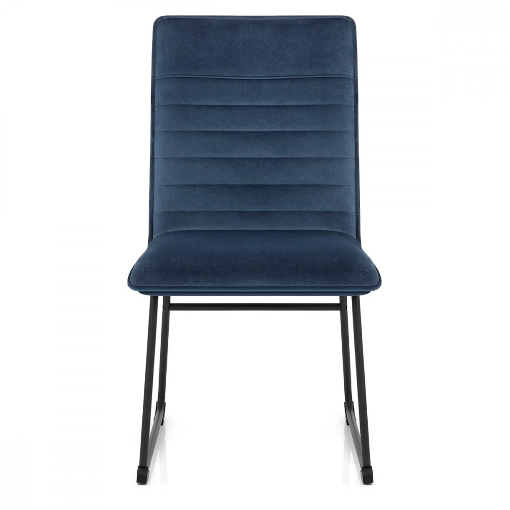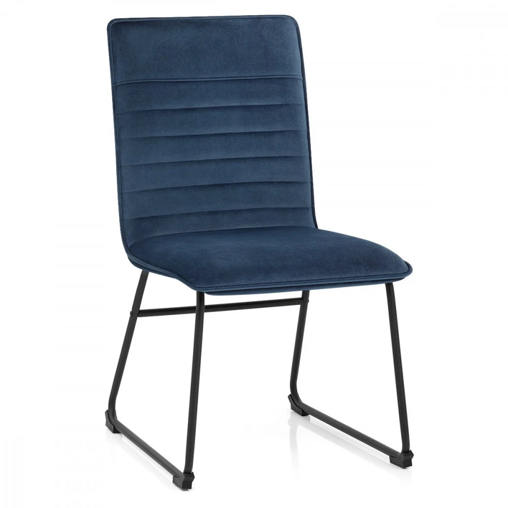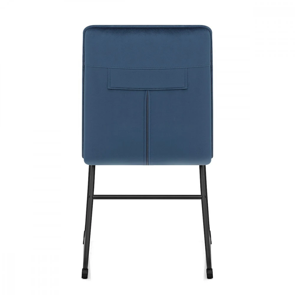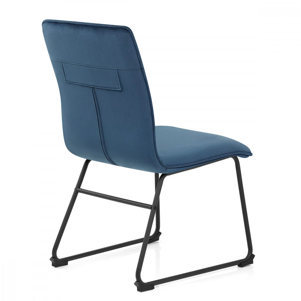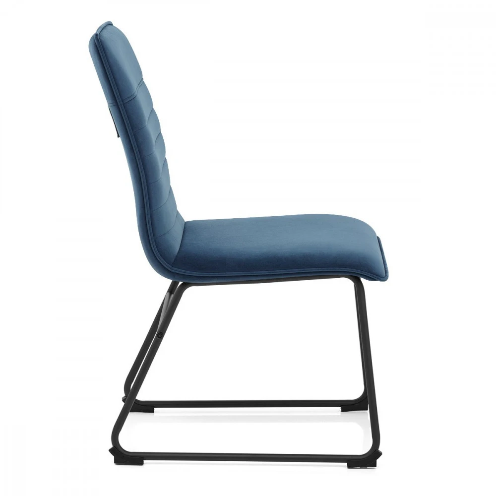 Der Samtstuhl Chevelle ist ein hervorragender Sitzmöbel. Die Kombination aus weichem, dekadentem Polster und stilvollem, pulverlackiertem Gestell verleiht dem Stuhl eine fantastische Ausstrahlung und passt zu jeder Einrichtung. Die Ränder der Sitzfläche und der hohen Rückenlehne des Chevelle sind mit Paspeln versehen, die die dichte Schaumstoffpolsterung des Stuhls betonen und ihm einen edlen Charakter verleihen. Der Samt der Innenseite der Rückenlehne ist mit horizontalen Nähten verziert, die eine auffällige Retro-Ästhetik schaffen. Die Füße sind aus massivem Metall gefertigt und in schwarzem, satiniertem Finish lackiert. An der Unterseite des Gestells befinden sich Schutzkappen für den Boden.