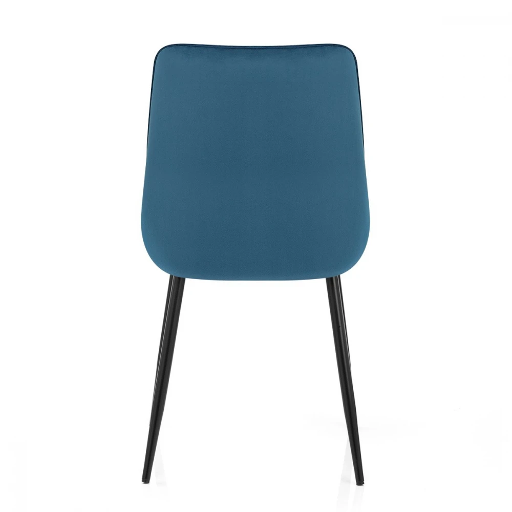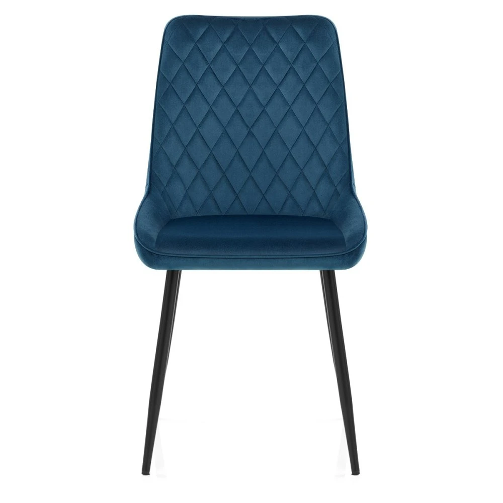 Der Chevy Samt Esszimmerstuhl ist in seinem Stil herrlich bezaubernd und einzigartig. Genießen Sie den Chevy in jeder Umgebung, ob am Esstisch oder in einer Lounge oder einem Wohnbereich. Das Sitzpolster ist dicht gepolstert und wird von einer hohen Rückenlehne ergänzt, deren V-förmige Nähte für einen dynamischen Blickfang sorgen. Die massiven Metallbeine sind spitz und mit schwarzem Pulverlack beschichtet, was ihnen ein edles Aussehen verleiht. Jedes Bein hat einen Schutzstopfen an der Basis, um Schäden an Böden und Oberflächen zu vermeiden.