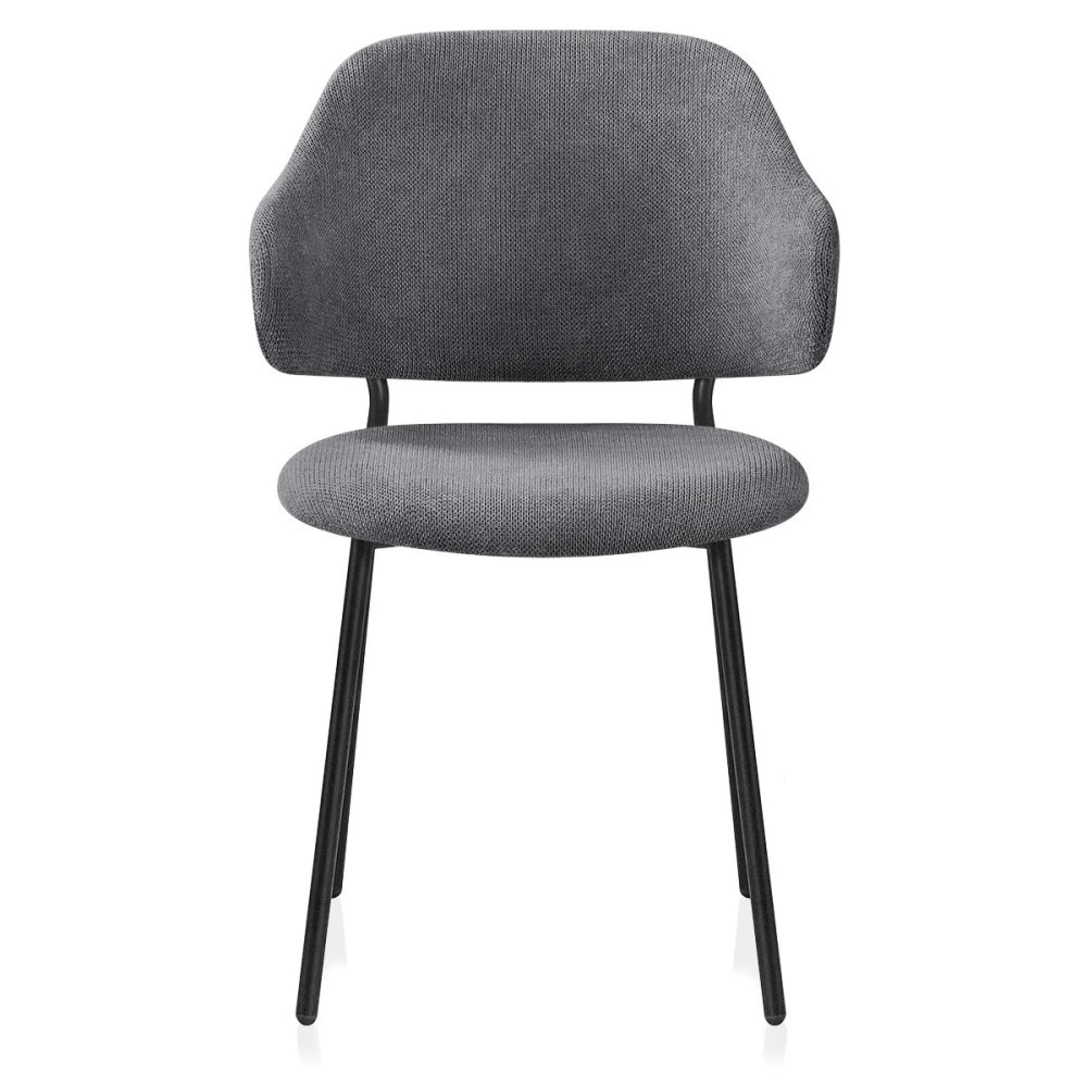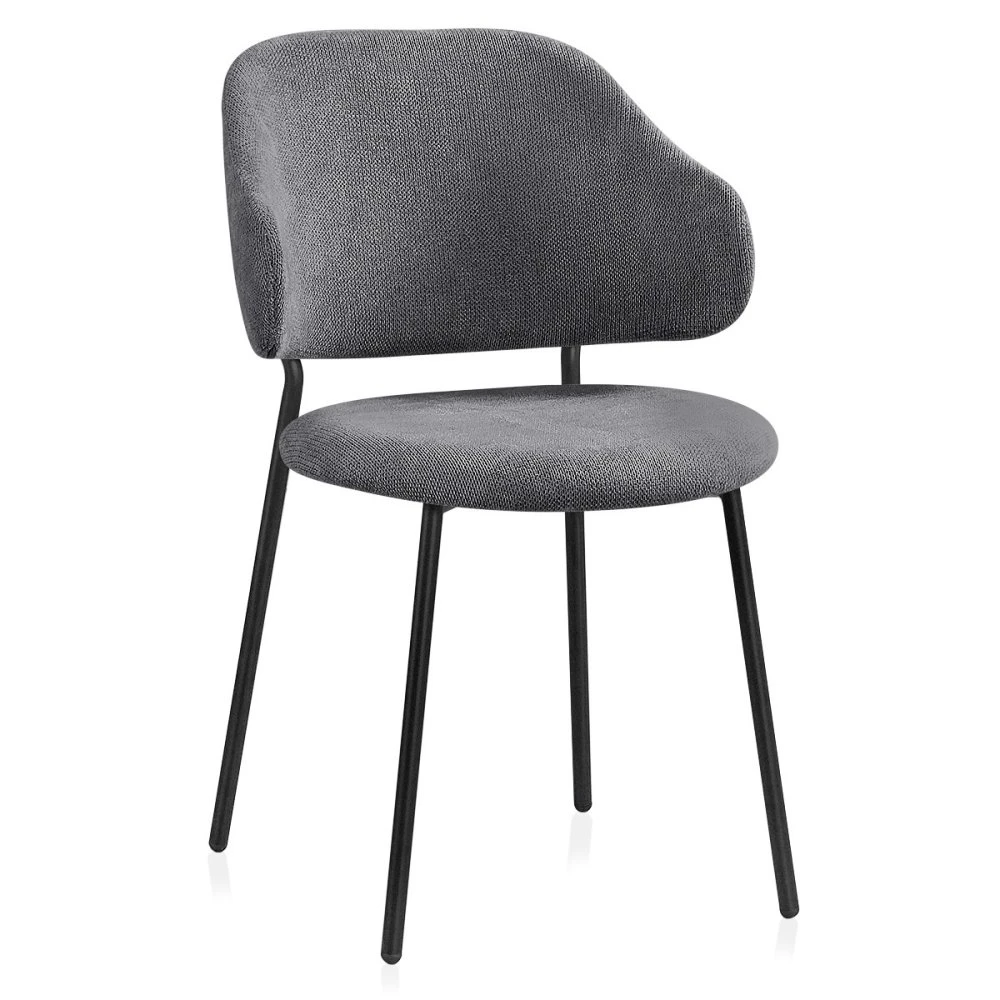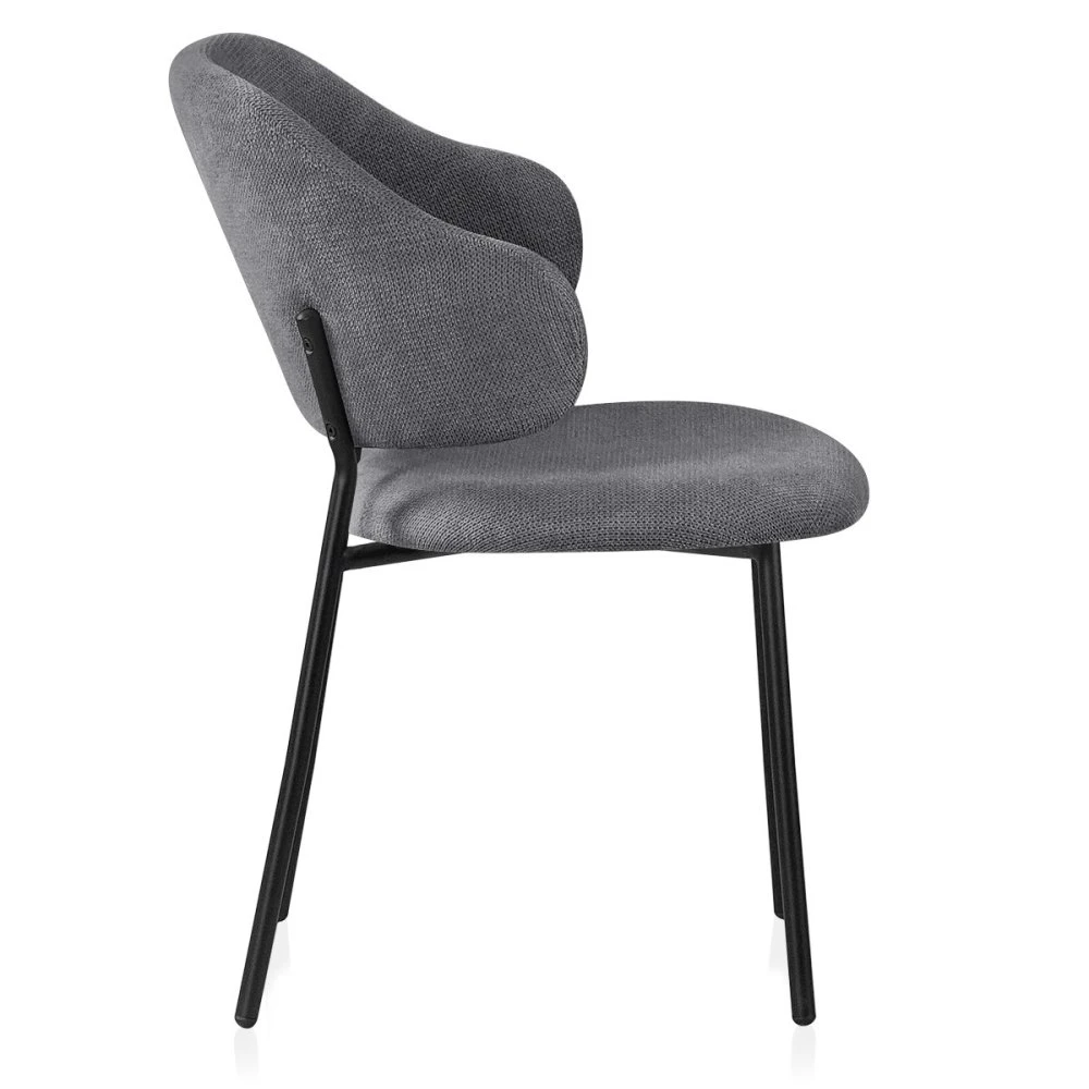 Der Brodie Esszimmerstuhl hat einen geschmackvollen und anspruchsvollen modernen Stil. Sein täuschend einfaches Aussehen fügt sich leicht in jede Einrichtung oder Ästhetik ein. Der zweiteilige Sitz ist mit einem strukturierten Webstoff gepolstert. Die geschwungenen, geflügelten Seiten und die mittelhohe Rückenlehne bilden ein ergonomisches, umlaufendes Design. In Verbindung mit dem dicken, abgerundeten Sitzpolster ergibt sich ein bequemer und stützender Sitz. Die Aussparung in der Rückenlehne wird durch eine Verlängerung der Beine optisch geschlossen. Vier satinierte, schwarze Metallbeine runden den minimalistischen Look ab und passen perfekt zu dem darüber liegenden Sitz. Für zusätzlichen Halt und Langlebigkeit sind die Beine leicht verjüngt und reichen bis in die Unterseite der Rückenlehne. Die Stuhlfüße sind mit Schutzstopfen versehen, um Ihren Fußboden zu schonen.