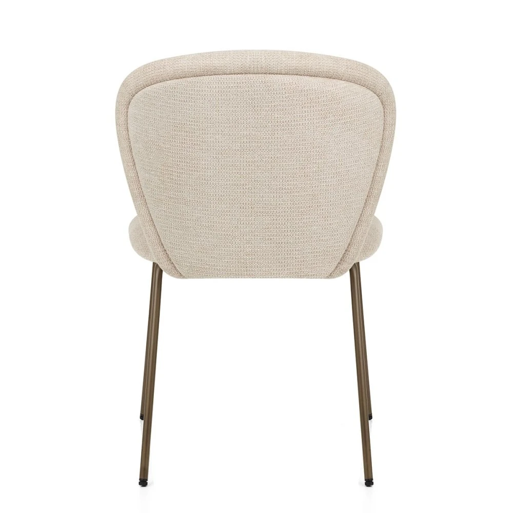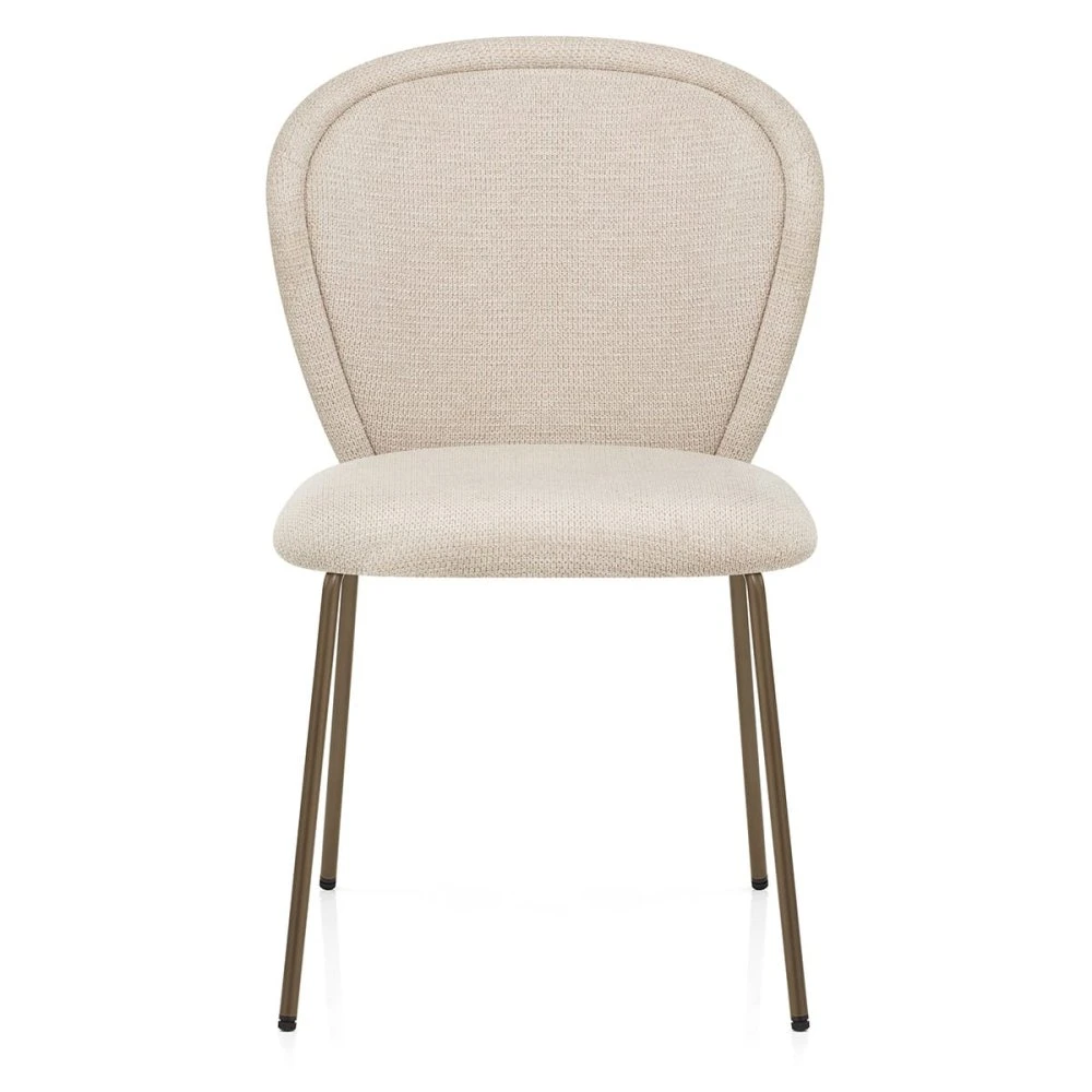 Verleihen Sie Ihrem Raum mit dem Isabella Esszimmerstuhl einen hochwertigen Touch. Dieser Stuhl ist darauf ausgelegt, Ihre Bedürfnisse sowohl modisch als auch funktionell zu erfüllen. Das dick gepolsterte Sitzkissen bietet außergewöhnlichen Komfort und Stabilität. Die hohe, konturierte Rückenlehne fördert eine gesunde Körperhaltung und besticht durch ihre runde Umrandung mit Ziernähten, die subtil Aufmerksamkeit erregen. Der vielseitige Stoff der Polsterung ist in verschiedenen Farben erhältlich, um sich harmonisch in Ihr Interieur einzufügen. Das Gestell des Stuhls besteht aus vier leicht abgewinkelten Metallbeinen mit einem Antikkupfer-Finish, das für eine interessante Optik sorgt und gleichzeitig mit der Farbe der Sitzfläche harmoniert. Jedes Bein ist mit einem schützenden Bodenstopfen versehen, um Schäden an Ihrem Fußboden zu vermeiden und für einen sicheren Stand zu sorgen.