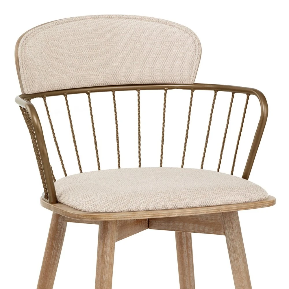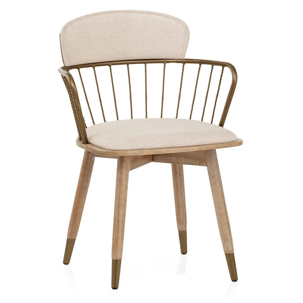 Der Opera Esszimmerstuhl mit Stoffbezug ist eine schicke Neuinterpretation traditioneller Landhausstühle und verleiht jedem Raum eine charmante Note. Er passt mühelos in verschiedene Umgebungen, von rustikal bis modern. Die bequeme Sitzfläche aus hochwertigem Stoff wird von einem stabilen Untergestell aus Eichenholz getragen, das den natürlichen, rustikalen Charakter des Stuhls unterstreicht. Der elegante Rahmen aus antikem Kupfer umschließt den Sitzbereich und formt dekorative Armlehnen mit spiralförmigen Stäben. Darüber hinaus sorgt die zusätzliche Polsterung in der hohen Rückenlehne für hervorragende Unterstützung, ideal für entspannte Abendessen oder gesellige Runden. Die vier ergonomischen Beine verleihen dem Stuhl Stabilität, während die Kupferspitzen dem Gesamtbild einen Hauch von Raffinesse verleihen. Mit Bodenschützern ausgestattet, schützt der Opera Esszimmerstuhl Ihre Böden vor Druck und Abdrücken, sodass Sie sich ganz auf die Schönheit und den Komfort dieses einzigartigen Möbelstücks konzentrieren können.