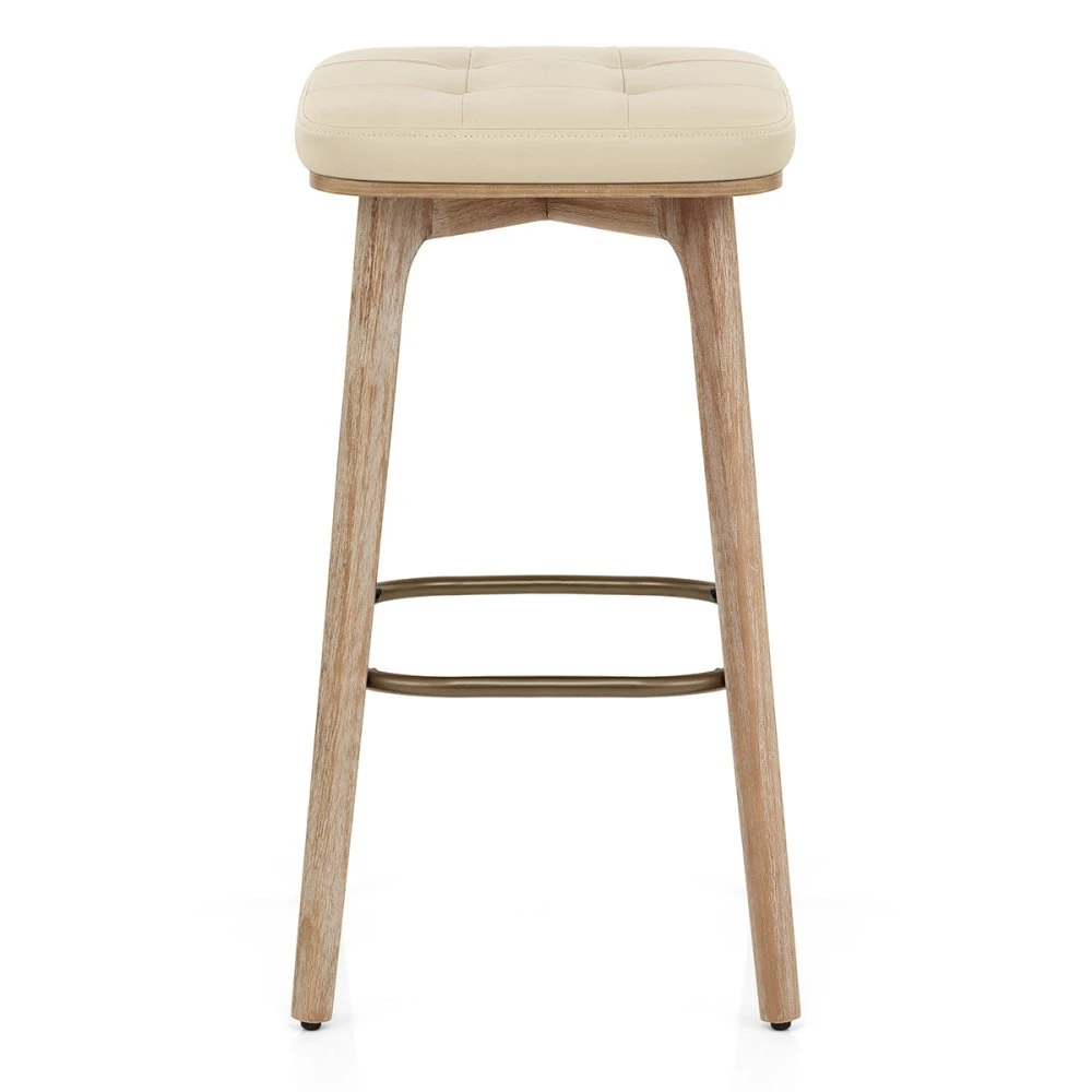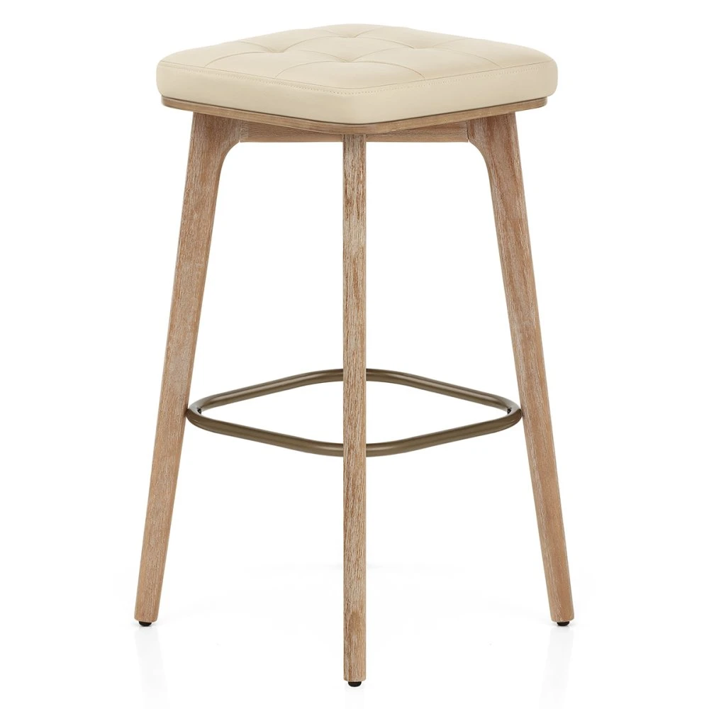 Der Eichenhocker Malmo ist ein wahrer Alleskönner, der mit seinem natürlichen Charme glänzt und sowohl zu skandinavischen als auch rustikalen Einrichtungen passt. Sein gemütliches und ländliches Design bringt Wärme und Ruhe an Ihre Küchentheke und bietet dank der dick gepolsterten Sitzfläche mit Kunstlederbezug höchsten Komfort. Das neunteilige Gittermuster auf der Vorderseite verleiht ihm einen zusätzlichen Hauch von Raffinesse, während das flache Eichenholzgestell nicht nur als stabiler Rahmen dient, sondern auch einen harmonischen Übergang zwischen dem Kunstleder und dem Holz schafft. Die robusten Eichenholzbeine sind mit einer quadratischen, kupfernen Verstrebung ausgestattet, die als praktische Fußstütze fungiert und mit ihren abgerundeten Ecken die weiche und natürliche Ausstrahlung des Hockers unterstreicht. Um Ihre Böden zu schützen und ein langanhaltendes, stilvolles Ambiente zu gewährleisten, sind unter jedem Bein Bodenpolster angebracht, die den harten Kontakt mit dem Boden reduzieren und mögliche Kratzer verhindern.