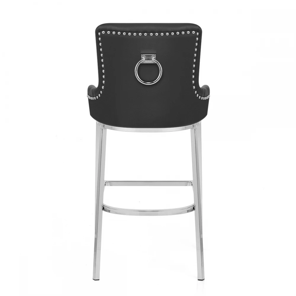 Der Bliss Barhocker ist ein moderner Stil. Glamouröses Kunstleder polstert den Sitz und die hohe Rückenlehne für mehr Komfort. Die Rückenlehne verfügt über einen prächtigen Chromring mit verchromter Knopfleiste auf der Rückseite. Der Rahmen in fester Höhe und besteht aus vier verchromten Beinen. Diese werden durch Verstrebungen verstärkt und verfügen über eine praktische Fußstütze. Schützende Bodenstopfen vervollständigen das Design und ermöglichen die Verwendung auf einer Vielzahl von Oberflächen, wodurch der Bliss zu einem standfesten und stilvollen Möbelstück wird.