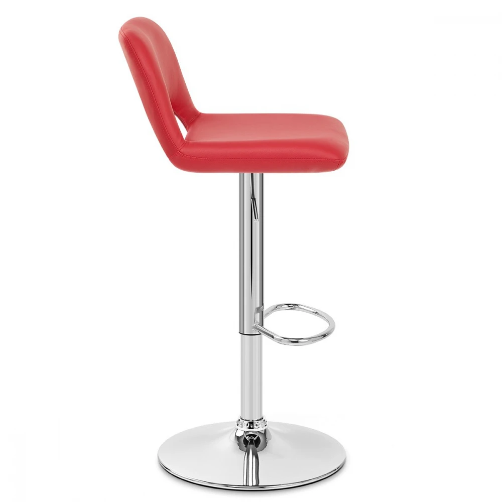 Der Hugo bietet einen äußerst bequemen Sitz aus Kunstleder, dessen auffällige Polsterung zusätzlich mit einer halbmondförmigen Trennwand zwischen dem gepolsterten Sitz und der hohen Rückenlehne des Hugo verziert ist. Die dichte Schaumstoffpolsterung und die anschmiegsame, sanft geschwungene Form bieten den gewünschten Halt. Zudem ist die Höhe beim Hugo stufenlos einstellbar und um 360° drehbar. Der gewölbte Rundsockel des Hockers ist passend zum restlichen Gestell verchromt und mit einem Bodenschutz versehen, um Kratzer und Abnutzungserscheinungen zu vermeiden. Alles in einem, verleihen diese Eigenschaften den Barhockern ein wilkommendes Maß an Praktikalität.