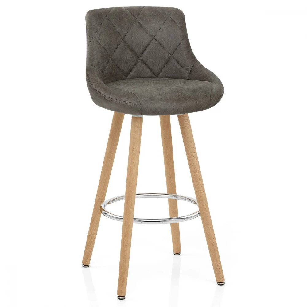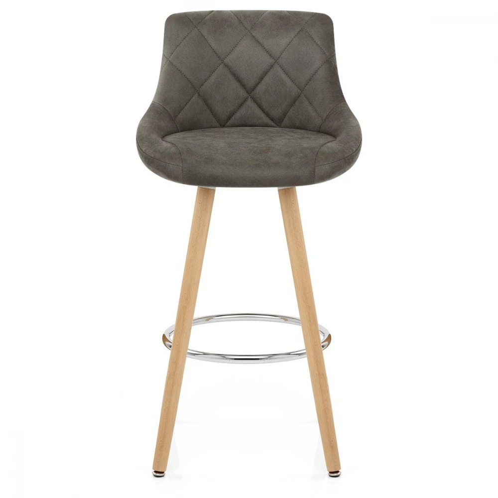 Unser Fuse Barhocker ist charmant und zugleich stilvoll, mit zeitgenössischem Sitzdesign lädt er zum Verweilen auf Höhe der Bar ein. Gerne werden Sie, mit Ihm in Ihrem Zuhause, Freunde und Familie dazu einladen, diese trendige Kombination aus Anmut und Unterstützung zu genießen. Der geschwungene Sitz ist mit einem antiken Kunstlederbezug verkleidet und auf der Innenseite mit Rautennähten versehen. Die erstklassige Polsterung sorgt für einen hohen Sitzkomfort und bietet so eine perfekte Gelegenheit zum Entspannen. Die vier Holzbeine des Barhockers verfügen über ein poliertes Eichenholz-Finish in attraktivem Kontrast zum Sitz. Diese Beine sind noch zusätzlich mit einer verchromten Fußstütze veredelt. Unter jedem Fuß befindet sich eine Schutzvorrichtung, die dazu beiträgt, die Oberflächen frei von Unebenheiten zu halten.