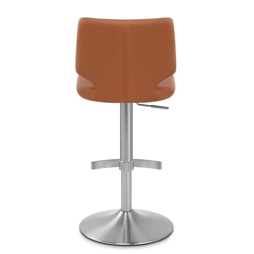 Der Mode Hocker aus gebürstetem Stahl ist nicht nur ein Sitzplatz, sondern ein echtes Statement für Ihren Barbereich! Mit seiner markanten, skulpturalen Form zieht er alle Blicke auf sich und vereint moderne Ästhetik mit ergonomischem Komfort. Die kunstledergepolsterte Sitzfläche lädt dazu ein, sich zurückzulehnen und zu entspannen, während die hochgelegene, sechseckige Rückenlehne mit ihren dekorativen Nähten einen eleganten Akzent setzt. Die Sitzfläche und Rückenlehne ergeben eine ansprechende Sanduhrform, die den Hocker nicht nur stylisch, sondern auch funktional macht. Mit dem praktischen Gasdruckfeder-Mechanismus und 360 Grad Drehfunktion können Sie den Hocher jederzeit Ihren Wünschen entsprechend justieren. Die feste, T-förmige Fußstütze sorgt für zusätzlichen Komfort, während der runde Sockel mit einem ringförmigen Bodenschutz ausgestattet ist, der unschöne Bodenmarkierungen verhindert. Der Mode Hocker ist die perfekte Kombination aus Stil und Funktionalität – ein Must-Have für jeden modernen Barbereich!