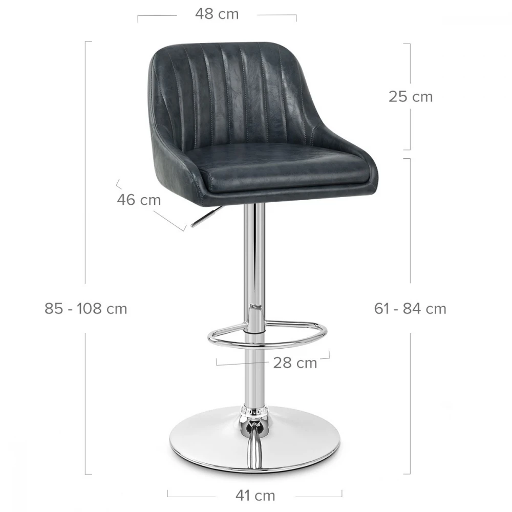 Der Hobart Barhocker vereint klassische und zeitgenössische Elemente und verleiht jedem Interieur eine subtile Eleganz. Lehnen Sie sich zurück und genießen Sie ein komfortables Möbelstück, das als atemberaubendes Statement-Stück dient. Das eingesetzte Sitzpolster und die umlaufende mittelhohe Rückenlehne sind für mehr Halt und maximale Entspannung gepolstert. Unter dem Sitz befindet sich ein Chromgestell, dieser bietet einen nachhaltigen Halt, eine höhenverstellende Funktion, eine Fußstütze und die Möglichkeit den Sitz um 360 Grad zu drehen. Um Kratzer auf Ihren Böden zu vermeiden befindet sich unter jedem Fuß einen Schutzpolster.