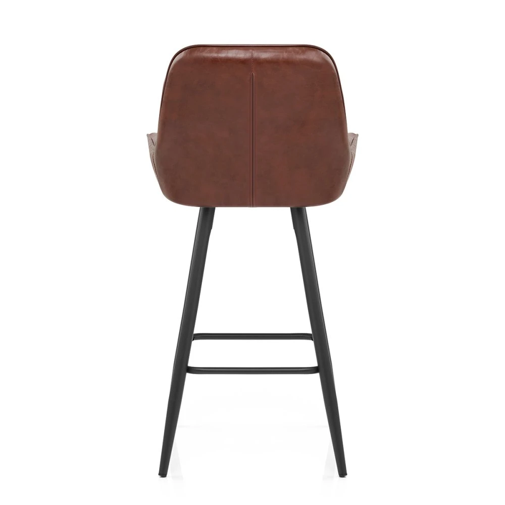 Unsere charakteristische Mustang-Kollektion hat gerade Zuwachs bekommen! Wir stellen vor: der Mustang Barhocker aus antikem Kunstleder. Das moderne Design mit Retro-Charme ist klassisch inspiriert und bietet Ihrer Küche eine elegante und bequeme Sitzlösung. Die dick gepolsterte Sitzfläche ist mit einem Antik-angehauchten Kunstlederbezug versehen. Umlaufende Seiten wickeln sich geradezu um Ihren Körper und gehen nach oben in eine hohe Rückenlehne über, die mit auffälligen vertikalen Nähten verziert ist. Der gesamte Sitz ist mit einer Paspelnaht eingefasst, die seine atemberaubende Form unterstreicht. Jedes der vier Rohrbeine ist mit einer schwarzen, satinierten Pulverbeschichtung versehen. Die soliden Beine verjüngen sich zum Boden hin und sind durch Verstrebungen verbunden, die auch den Füßen Halt bieten. Dieser Barstuhl hat die ideale Höhe für Ihre Küchentheke und wird mit praktischen Bodendübeln geliefert, die Ihre Fußböden schonen.