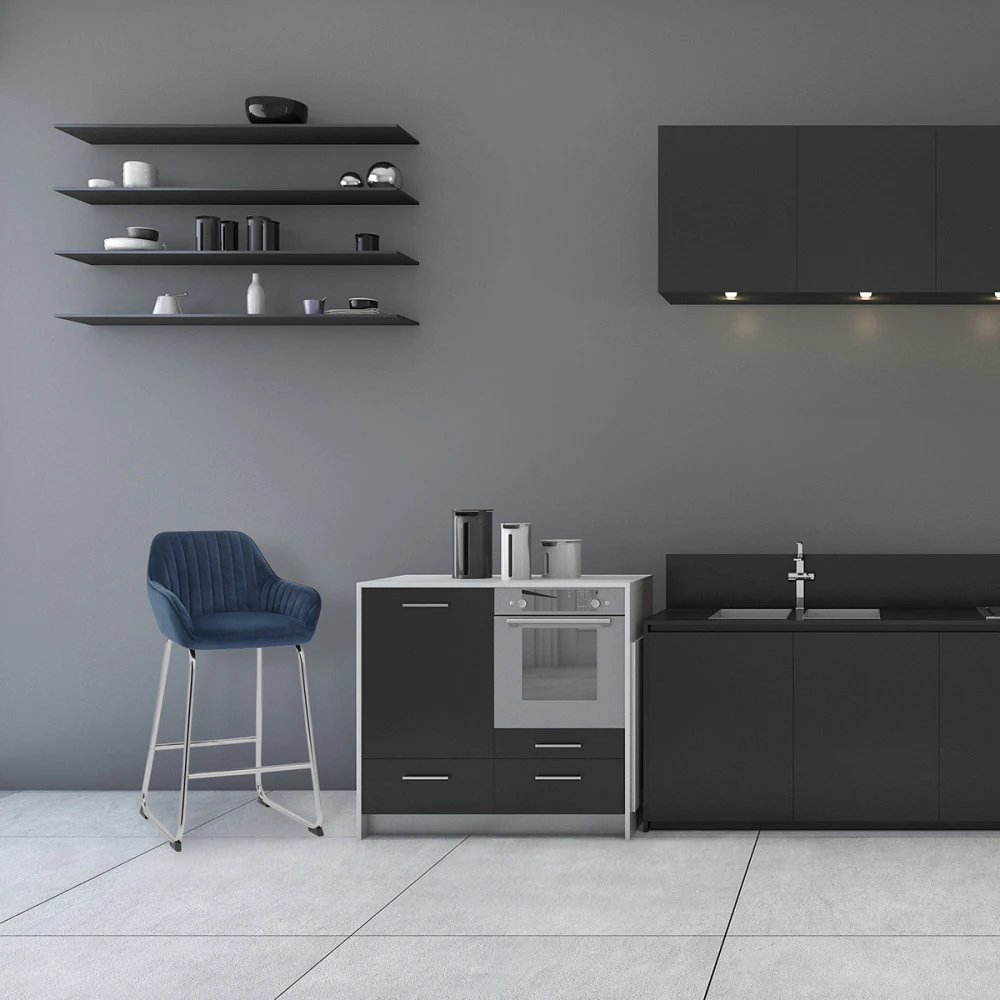 Der Samt Barhocker Kanto ist ein attraktiver Hocker, der ein klassisches Design mit modernen Elementen paart. Dieser Barhocker ist eine fantastische Wahl, wenn es darum geht, Ihr Zuhause so glamourös wie möglich zu gestalten. Die Rückenlehne geht auf beiden Seiten in bequeme Armlehnen über, die das Sitzpolster einrahmen und für ein Gefühl von Luxus sorgen. Die Dekoration in Form von vertikalen Nähten an der Innenseite der Rücken- und Armlehnen sowie Paspeln an den Kanten der Sitzfläche tragen dazu bei, dass dieses Möbelstück in einer Küche oder einem Essbereich auffällt. Die vordere Stange dient als stützende Fußstütze. Der Hocker ist auf der Standardhöhe der Küchenbar fixiert, um die Benutzung zu erleichtern.