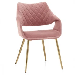 Mit seinem groβartigen Design wird der Samt Esszimmerstuhl Fairfield Ihren Innenraum mehrwertig addieren. Die auf sich selbst wickelnden Armenlehnen geben dem Stuhl seinen einzigartigen Design. Mit Samt bezogen zeigt der Sitz eine schlichte Fläsche während die Rückenlehne mit Diamant-Muster verfeinert ist. Die Bugholzplatte der Sitzfläsche sorgt für mehr Halt und kontrastiert harmonisch mit dem Samt. Vier robuste Beine mit gold Verarbeitung ergänzen den Sitz und verfeinern sich in Boden Nähe. Unter jedem Fuβ befindet sich einen Schutzpolster um Kratzer auf Ihre Böden zu vermeiden.