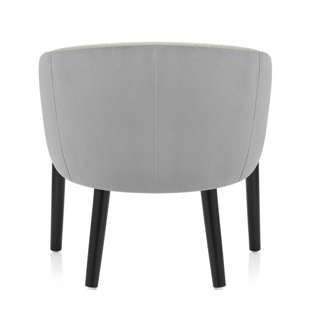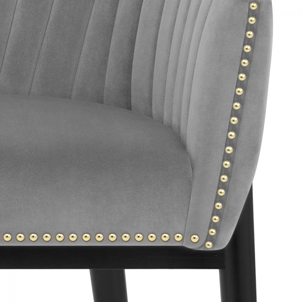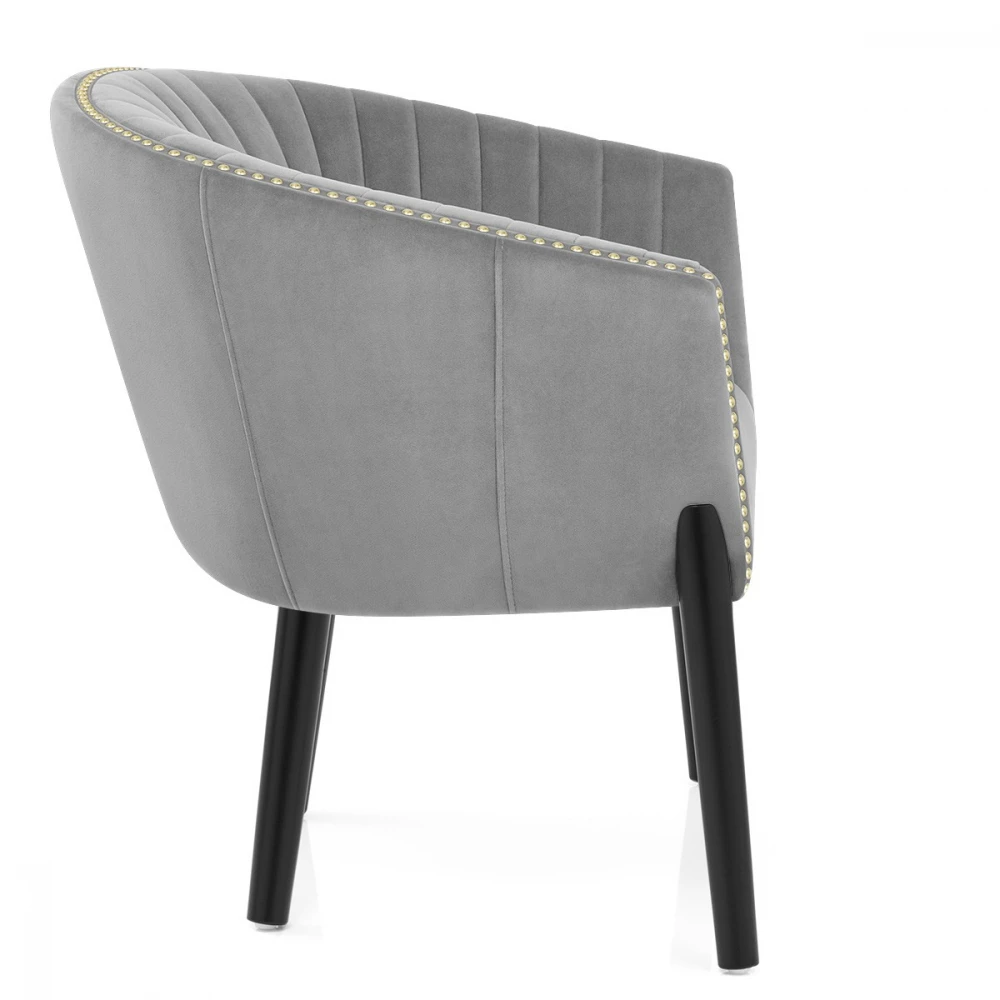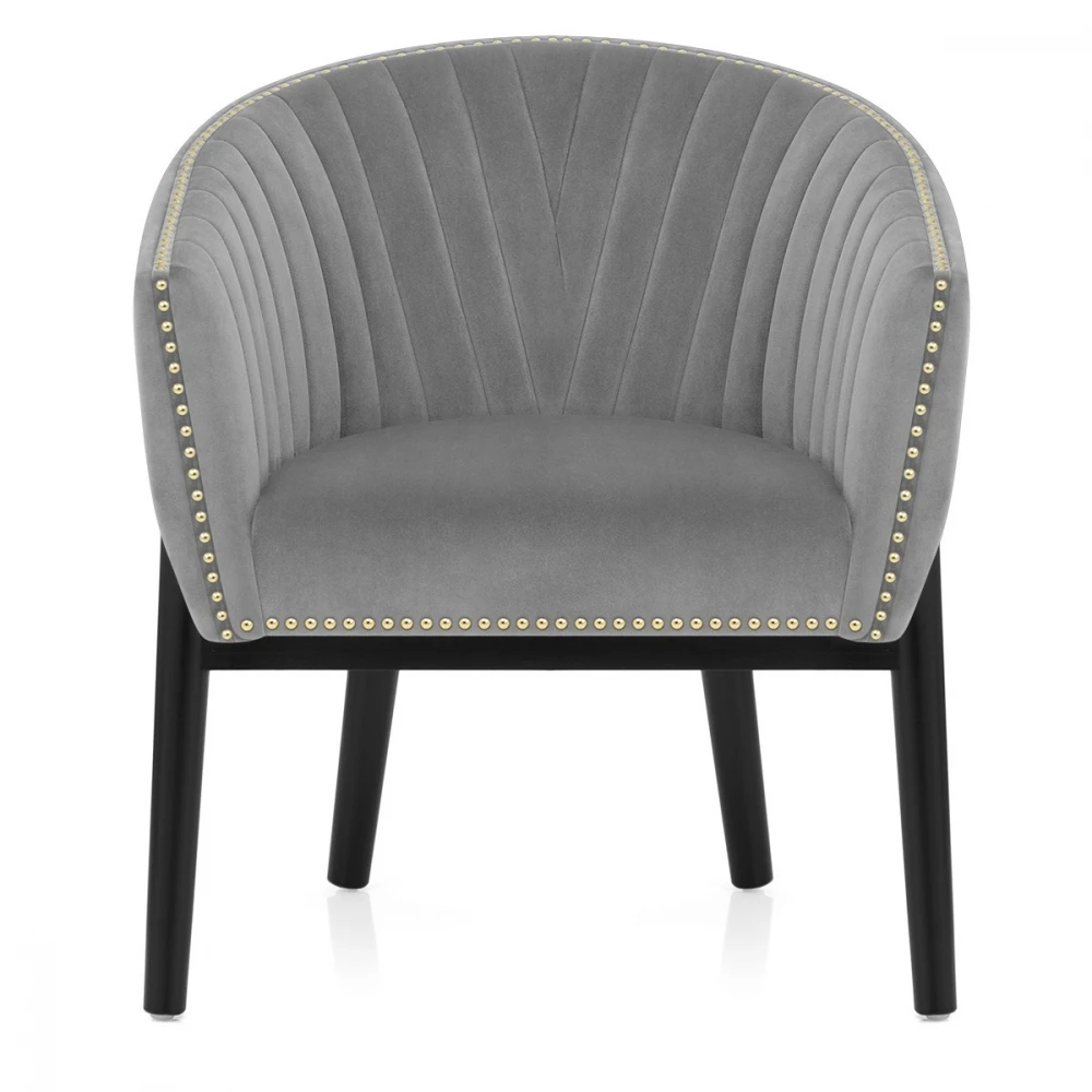 Wenn Sie nach einer verwöhnenden Ergänzung für Ihre Küche oder Ihren Essbereich suchen, ist der Samt Esszimmerstuhl Overture die perfekte Wahl. Der mit weichem, Samt bezogene Sitz ist gefedert und mit einer gepolsterten Rückenlehne und Armen versehen, die zur Entspannung einladen. Der mit Chromnieten eingefasste Sitz sieht elegant und raffiniert aus. Vier Beine aus massivem Holz verjüngen sich vom Sitz zum Boden und sind schwarz satiniert. Die abgerundeten Beine rahmen den Sitz ein und an der Basis jedes Beins befindet sich eine schützende Filzauflage, um Ihre Böden sauber zu halten.