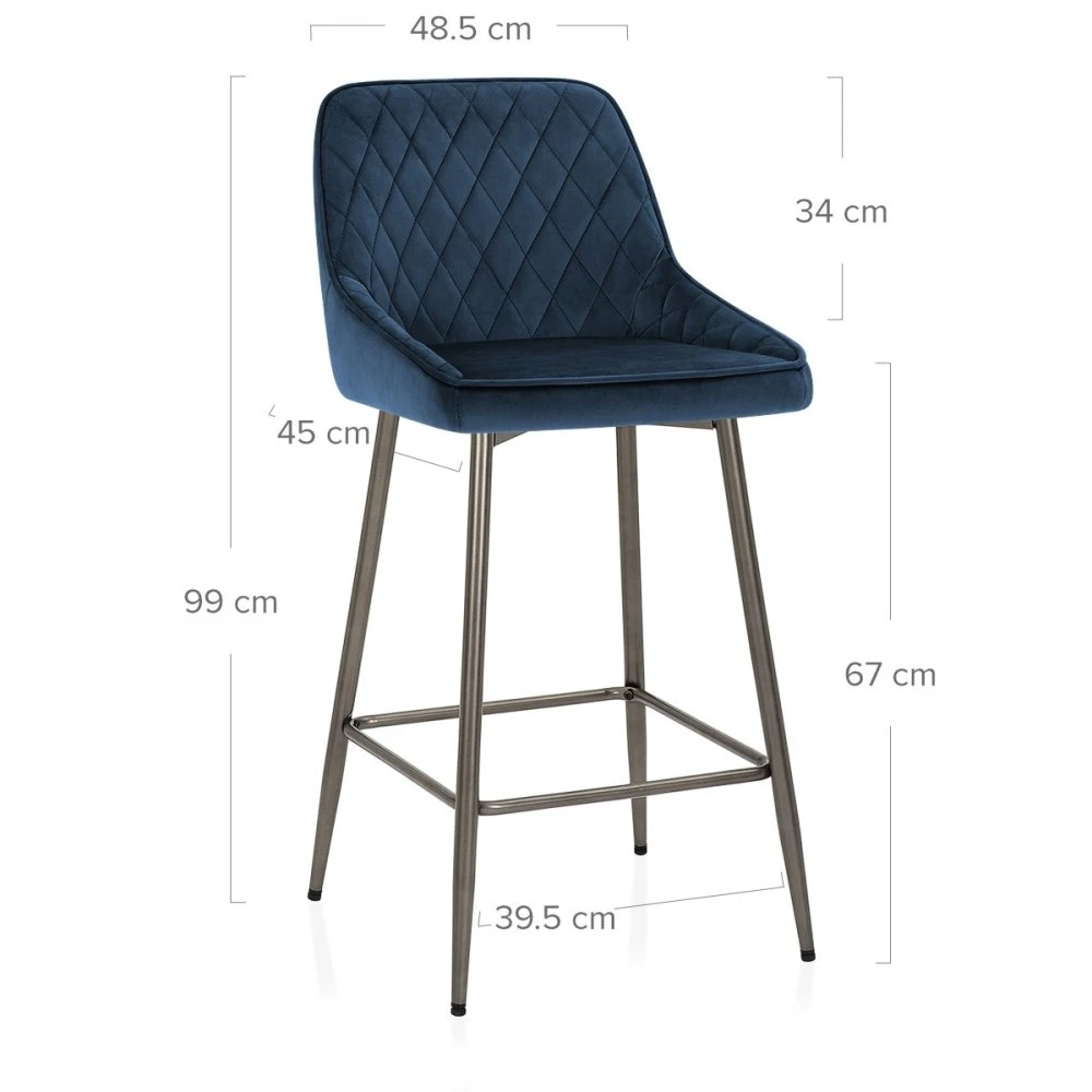 Der Brisbane Barhocker mit Samtbezug ist eine moderne und stilvolle Möglichkeit, jedem Raum eine angenehm warme Präsenz zu verleihen. Die hochwertige Verarbeitung und das hübsche Finish verleihen dem Hocker einen eleganten Look, der jede Bar aufwertet. Das fachmännische Design mit elegant platzierten Rauten-Nähten an der Innenseite der hohen Rückenlehne wird von einem üppigen Sitzkissen ergänzt, das zum langen Sitzen einlädt. Eine umlaufende Paspelierung und hübsche Winglets sorgen für ein außergewöhnliches Finish. Der elegante und robuste Hocker besteht aus vier stabilen Metallrohrbeinen, die sich unterhalb der Fußstütze verjüngen. Zum Schutz Ihrer Böden sind unter jedem Bein Schutzstopfen eingearbeitet.