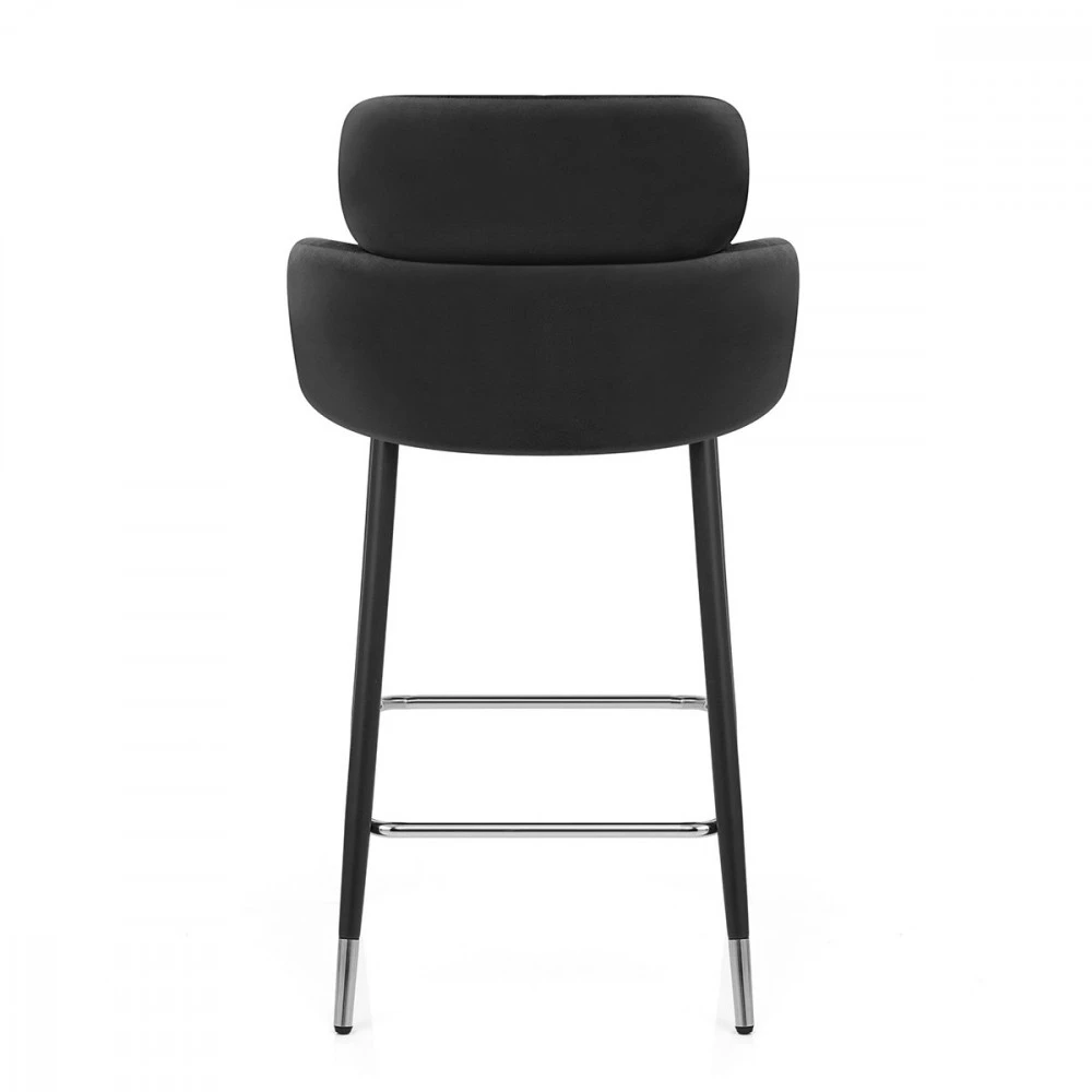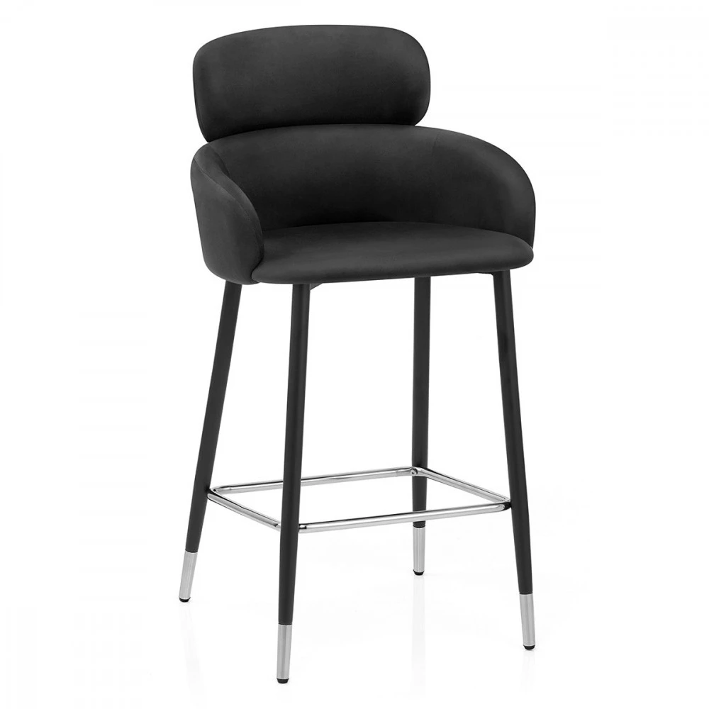 Der Samtbarhocker Chloe wird Sie begeistern. Wunderschön weicher Samt umhüllt den Sitz und verleiht dem modernen Design einen Hauch von Luxus. Der Sitz ist bequem gepolstert und verfügt über eine gewölbte Rückenlehne, die für Halt sorgt. Im Gegensatz zu dem umwerfenden Sitz steht einen schwarz satinierten Metallrahmen darunter. Jedes schwarz satinierte Bein ist mit Chromspitzen bedeckt und die vier Beine haben eine kontrastierende Fußstütze aus Chrom. Darüber hinaus ist jedes der Beine mit einem Schutzstopfen versehen, der den Boden vor Kratzern schützt.