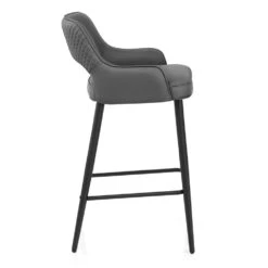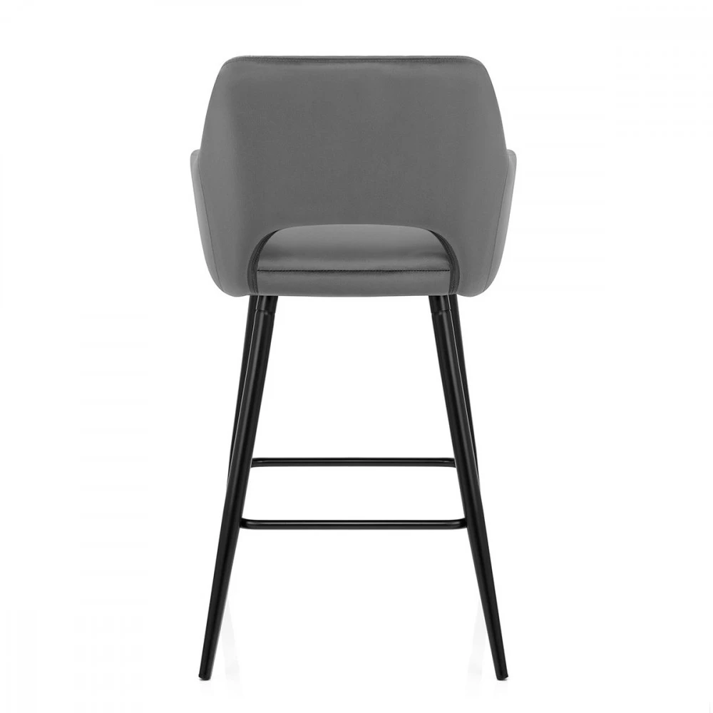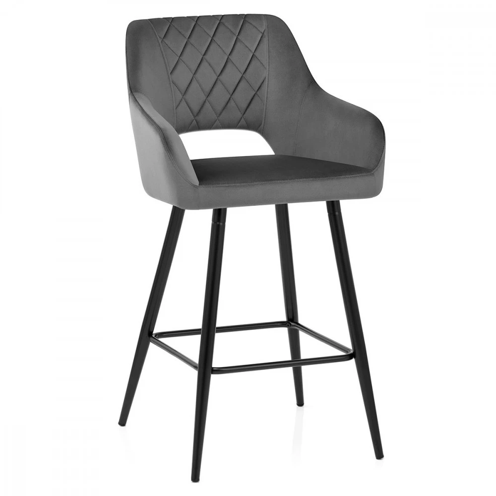 Lehnen Sie sich zurück in einen einladenden, wohlgeformten Sitz und genießen Sie den raffinierten Effekt, den der Lopez durch seine elegante Bauweise bietet. Die dichte Schaumstoffpolsterung ist mit einer weichen, dekadenten Samtschicht überzogen, die den Hocker in seiner Qualität und seinem Komfort noch begehrenswerter macht. Eine stützende Rückenlehne, die durch einen dezenten Spalt und ein abgestepptes Rautenmuster definiert ist, geht in gepolsterte Armlehnen über, die das Sitzpolster umschließen. Eine quadratische, schwarz satinierte Fußstütze unterstreicht den Halt der vier spitz zulaufenden Metallbeine. Das Gestell ist mit konservierenden Bodendübeln ausgestattet, so dass Ihr Boden geschütz wird.