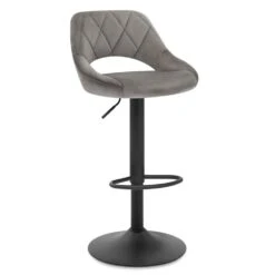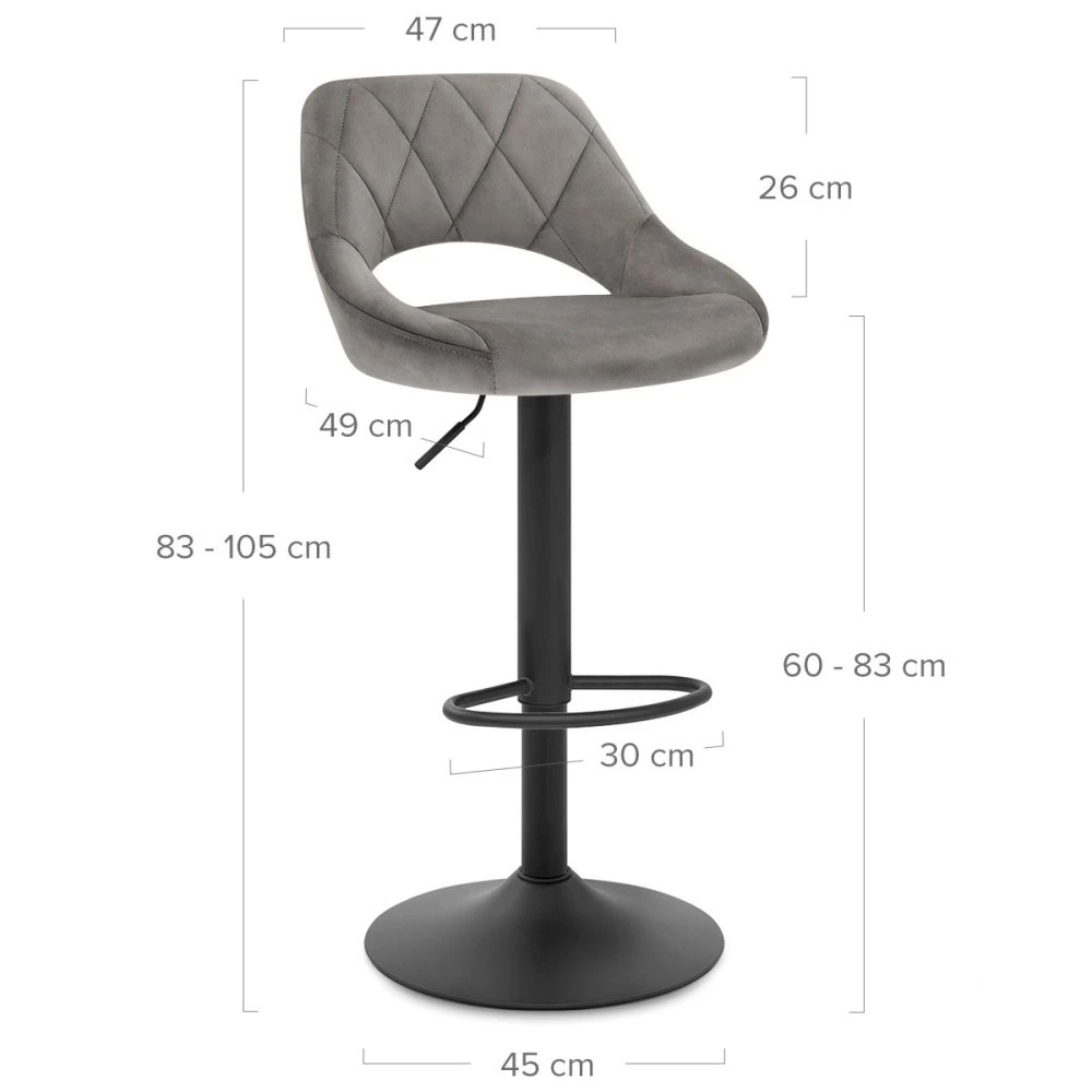 Mit seinem einzigartigen Design passt sich der moderner samtbezugin jedem Raum an. Für den hochwertigen Stil ist die Rückseite mit einem modischen diamantenförmigen Nahtmuster detailliert. Das dicht gepolsterte Sitzpolster geht in eine hohe Rückenlehne über, die Ihnen gemütlichen Halt bietet. Die Höhe ist einstellbar und der Samtbarhocker Nadia kann sich um 360° drehen, so dass eine große Bewegungsfreiheit gewährleistet ist. Das Gestell des Hockers ist durch eine schwarze Pulverbeschichtung mattiert. Bodenschutz ist an der Unterseite des Fußes angebracht und schützt Ihren Boden vor Schrammen und Kratzern.