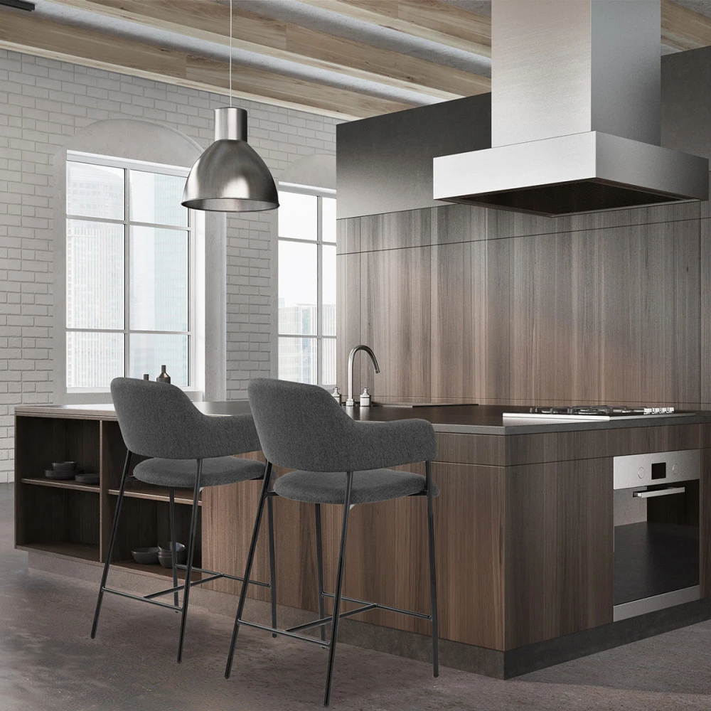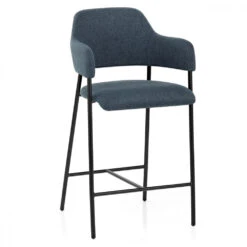 Der Trent Samtbarhocker verleiht Ihrem Zuhause einen ganz besonderen, modernen Look. Der Sitz aus Stoff und das Metallgestell ergänzen sich perfekt und bilden eine auffallende Dekoration für eine Bar, einen Tresen oder eine Arbeitsfläche. Die zusätzlichen Armlehnen machen den Trent zu einem empfehlenswerten Stuhl für alle, die sowohl Komfort als auch Ästhetik schätzen. Unter dem Sitzpolster befindet sich ein stabiles, Gestell, dass von Hand mit einer schwarzen Satinierung versehen wurde. Die Metalbeine des Hockers sind durch sich kreuzende Gitterstäbe verbunden, die auch als Fußstütze dienen. Die verstellbaren Füße an der Unterseite der Beine tragen dazu bei, dass der Hocker auch in Räumen mit unebenen Böden verwendet werden kann.