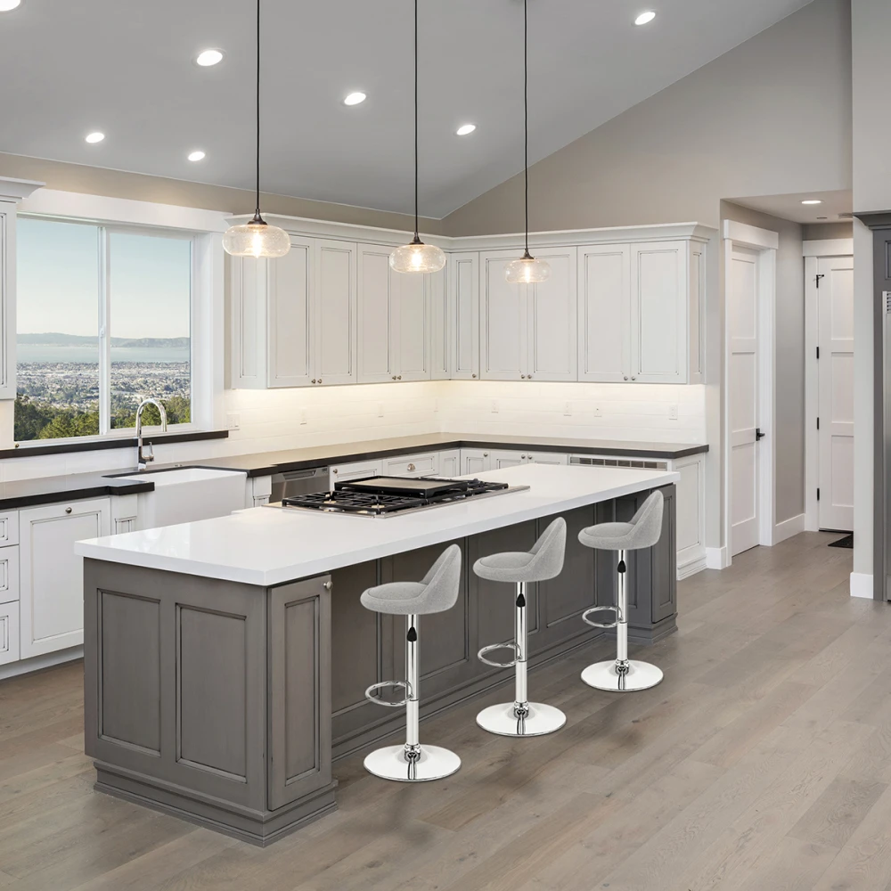 Der Glee Barhocker ist ein wunderbarer Begleiter zu Ihrem Barbereich. Der Sitz ist mit einem wunderschönen hellgrauen Stoff bezogen und komplett gepolstert. Das abgerundete Design wird durch eine Rückenlehne mit mittlerer Höhe unterstützt, die eine beruhigende Unterstützung bietet. In poliertem Chrom-Finish kombiniert die Mittelsäule mit einer geschwungenen Fußstütze und einer runden Basis den Rahmen. Außerdem ermöglicht die Gaslift-Funktion die Einstellung der Sitzhöhe und der 360-Grad-Drehmechanismus bietet leichten Zugang zu und von der Stange. Zu guter Letzt ist die Basis mit einem praktischen Bodenschutz ausgestattet, um den Boden sicher zu halten.