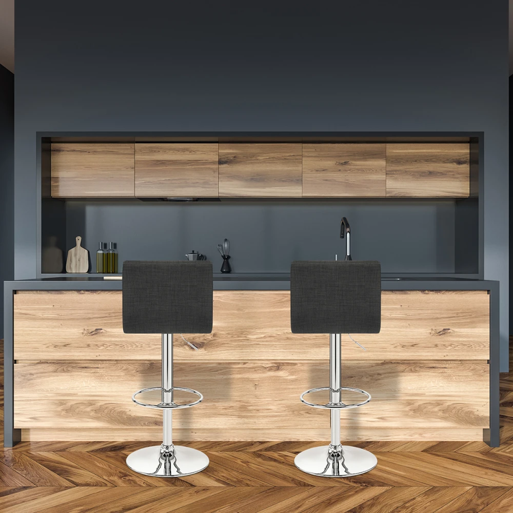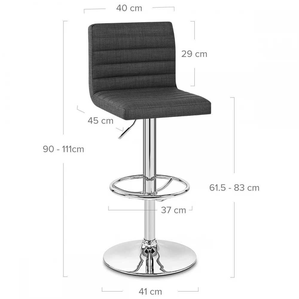 Ein exklusives Design, das sich in jeder Hinsicht auszeichnet, ist der Mint Barhocker ein großartiges Stück modernen Designs. Eine dichte Schaumstoffpolsterung und flauschiger Stoffbezug sind eine komfortable Kombination. Darüber hinaus bietet die mittlere Rückenlehne die nötige Unterstützung. Mit den horizontalen Nähten, hat der Sitz auch optisch viel zu bieten. Das Chromgestell gibt dem Rahmen seinen glatten Stil. Im Inneren des Rahmens befindet sich ein Gashebemechanismus mit variabler Höhe und 360-Grad-Drehfunktion für einfachen Zugang und Einstellbarkeit. Passend zur runden Fußstütze ist die runde Basis mit einem Bodenschutz versehen, wodurch Ihre Fußböden in einwandfreiem Zustand bleiben.