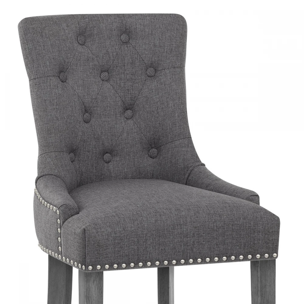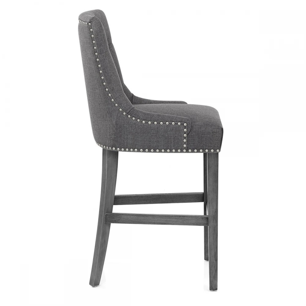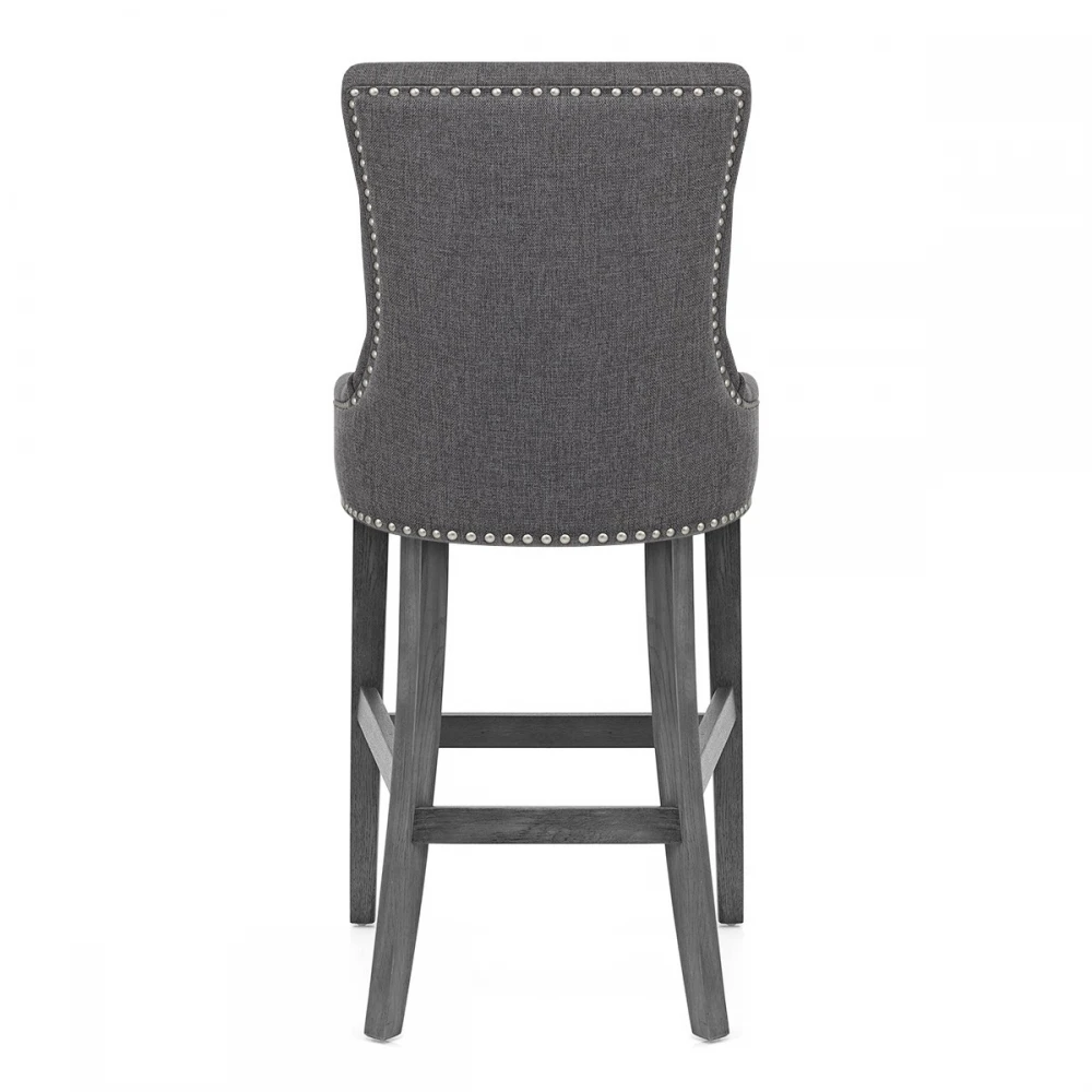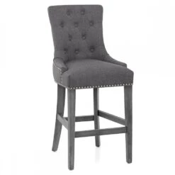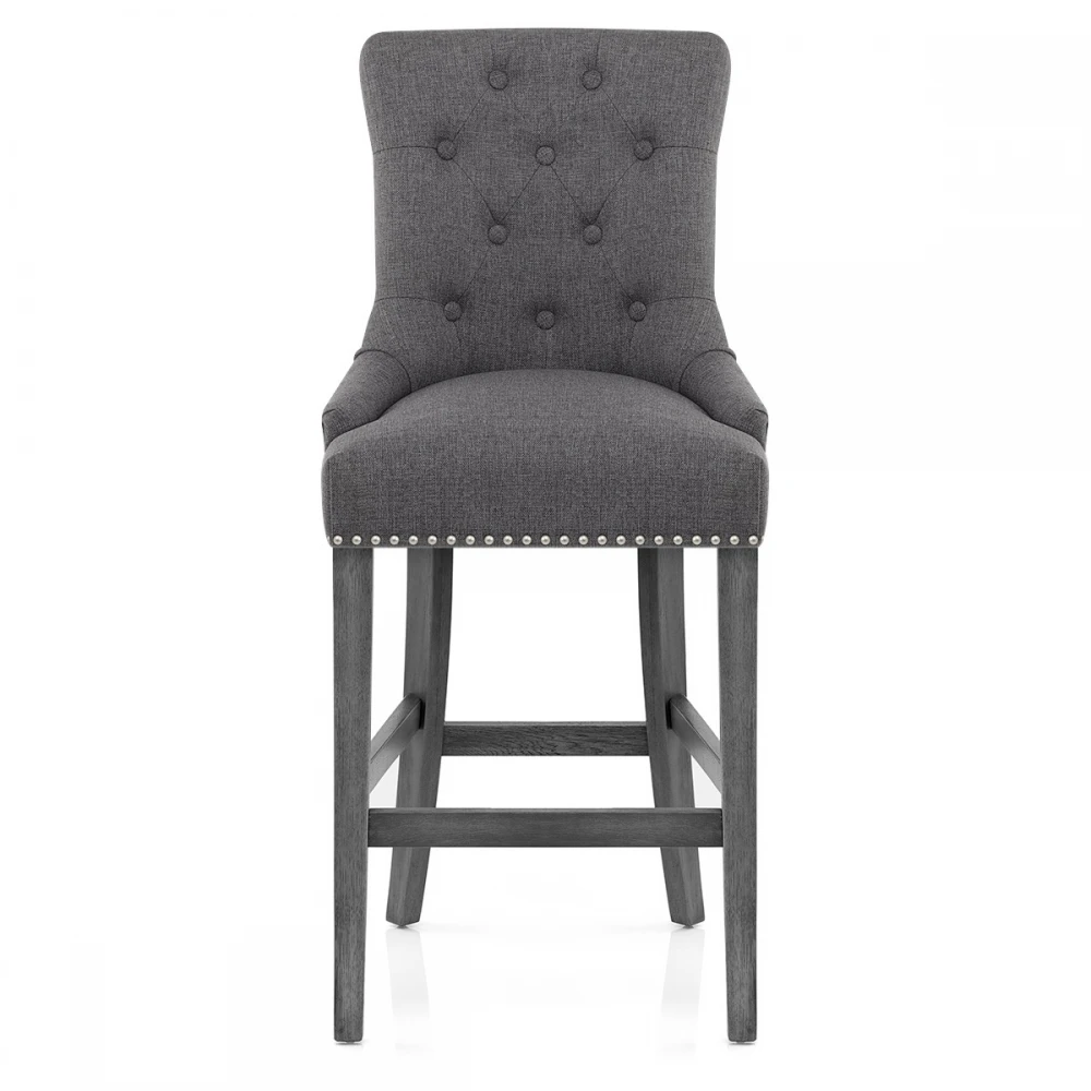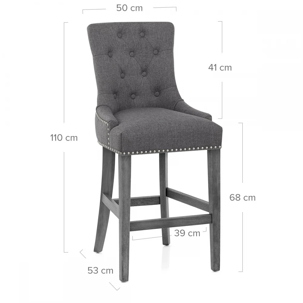 Der Stoffbarhocker Etienne ist fachmännisch angefertigt mit Stil und Funktionalität. Komfort wird mit dem gefederten und gegurteten Sitz und der Polsterung unter der stilvollen Holzkohlepolsterung versprochen. Die Rückenlehne trifft auf den Sitz mit einem umlaufenden Design für ein umfassendes Gefühl, und ist mit klassischen gesteppten Knopfdetails verziert, während Bolzen hinten schmücken. Unterhalb des Sitzes befindet sich ein stabiles Gestell aus massivem Holz, das aus vier Beinen und einer Fußstütze besteht. Dem Barhocker wird sein zeitgemäßes Flair verliehen. Das Gestell ist grau, welcher den Sitz wunderbar ergänzt. Jedes Bein ist mit einem Schutzstopfen versehen, um sicherzustellen, dass Ihre Böden beschützt warden.